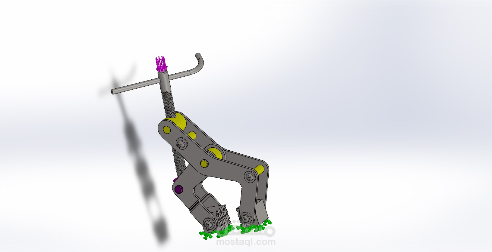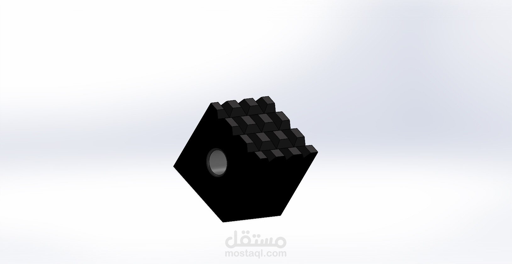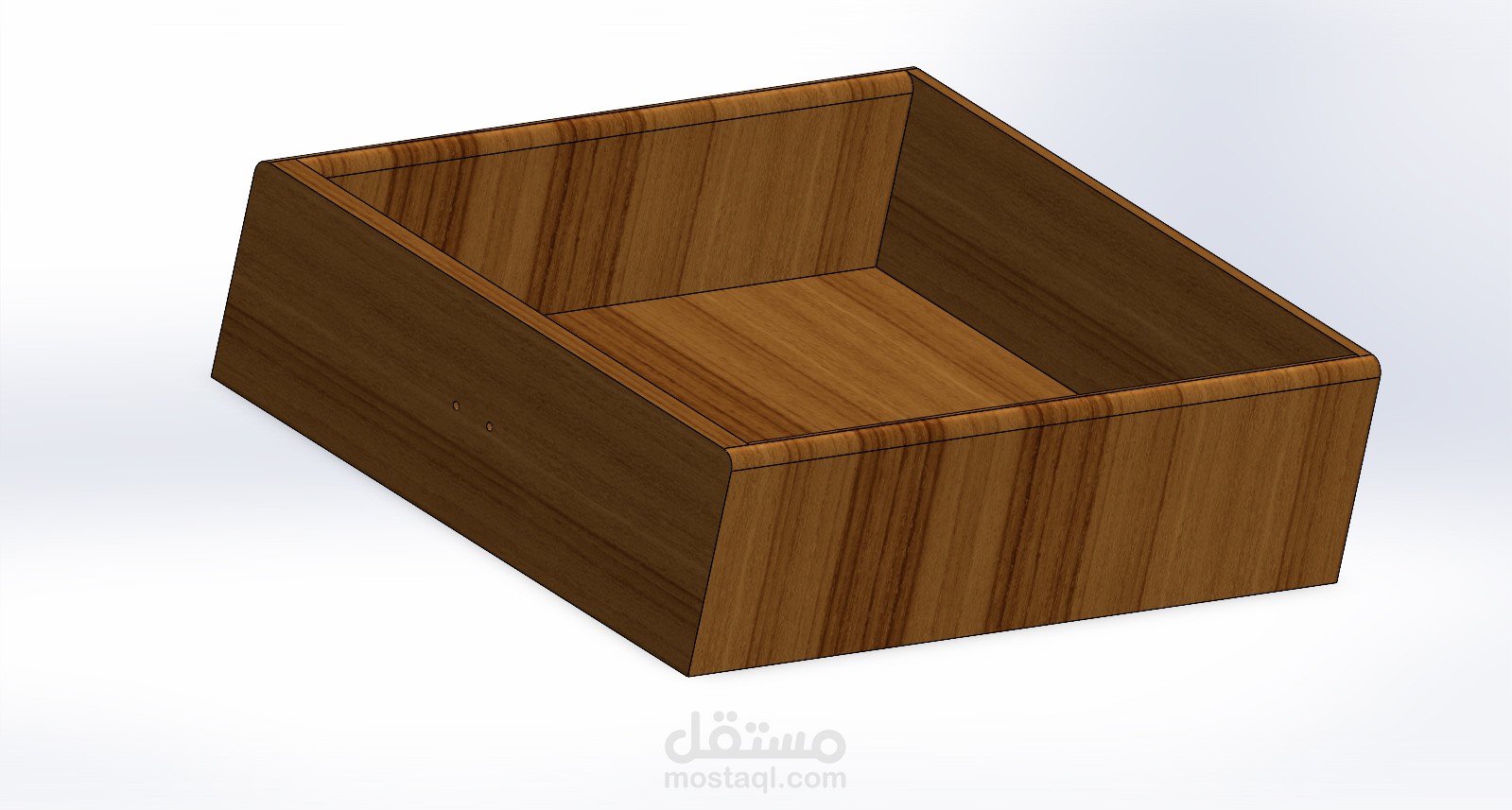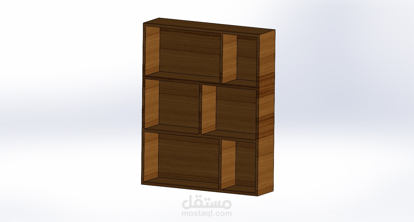 هذا النموذج ثلاثي الأبعاد يُمثّل مكتبًا خشبيًا مع رف كتب مدمج، تم تصميمه باستخدام برنامج SolidWorks.