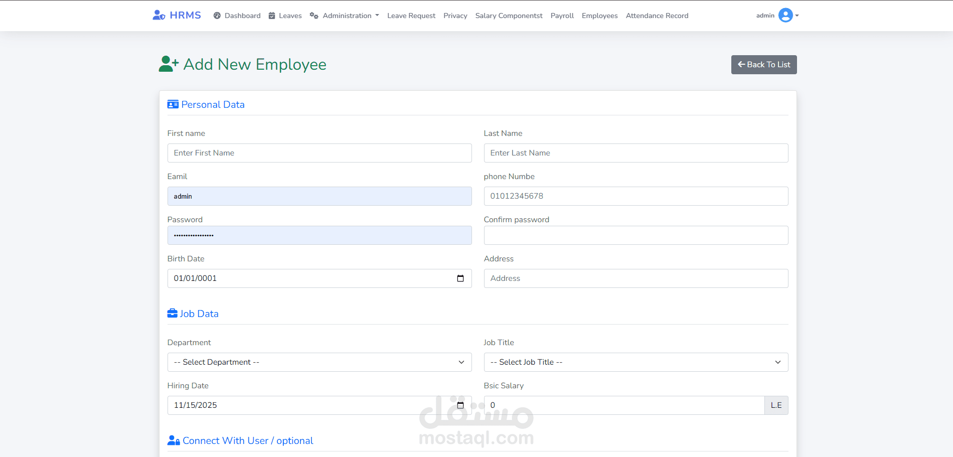 المكونات الأساسية لنظام HRMS