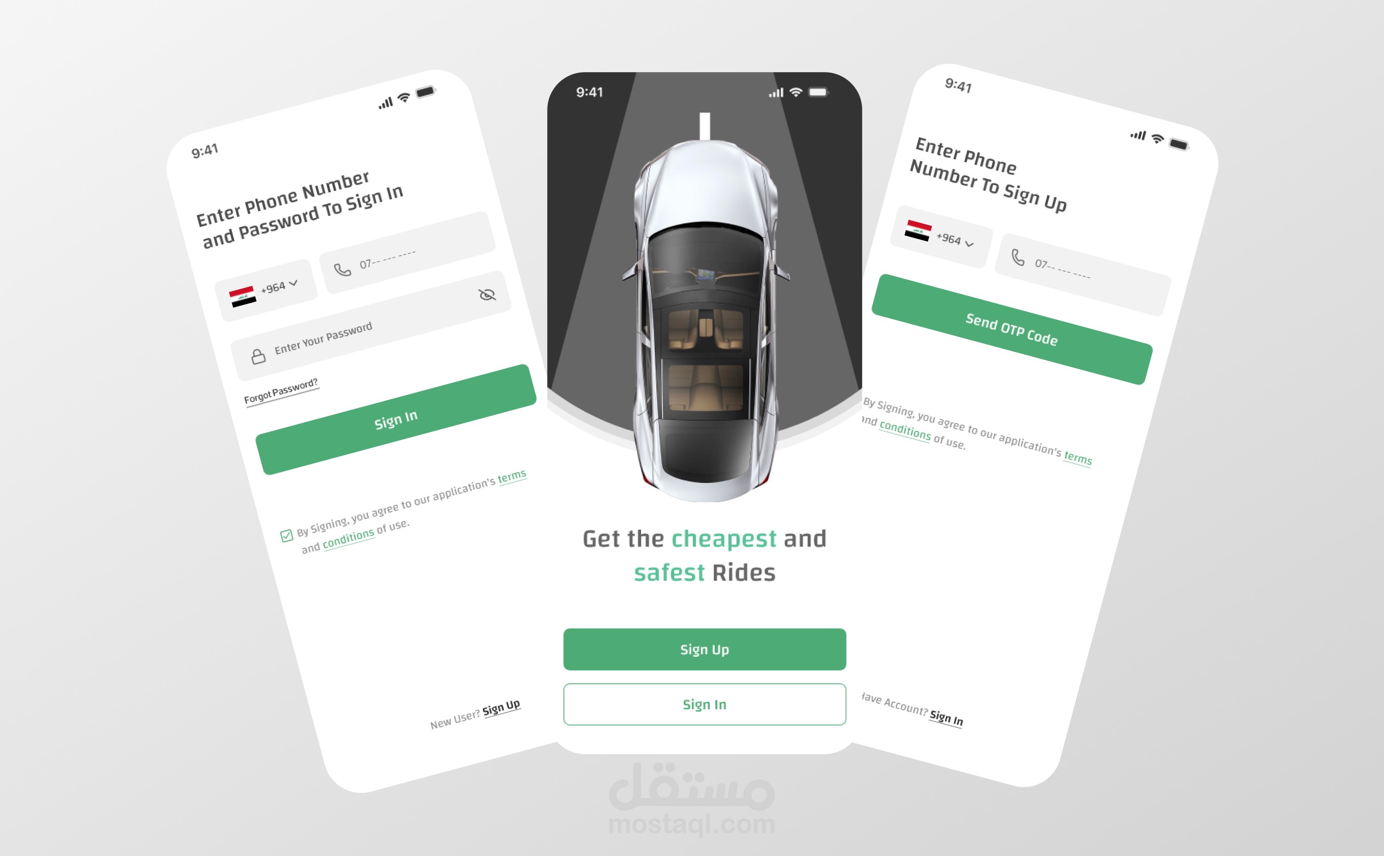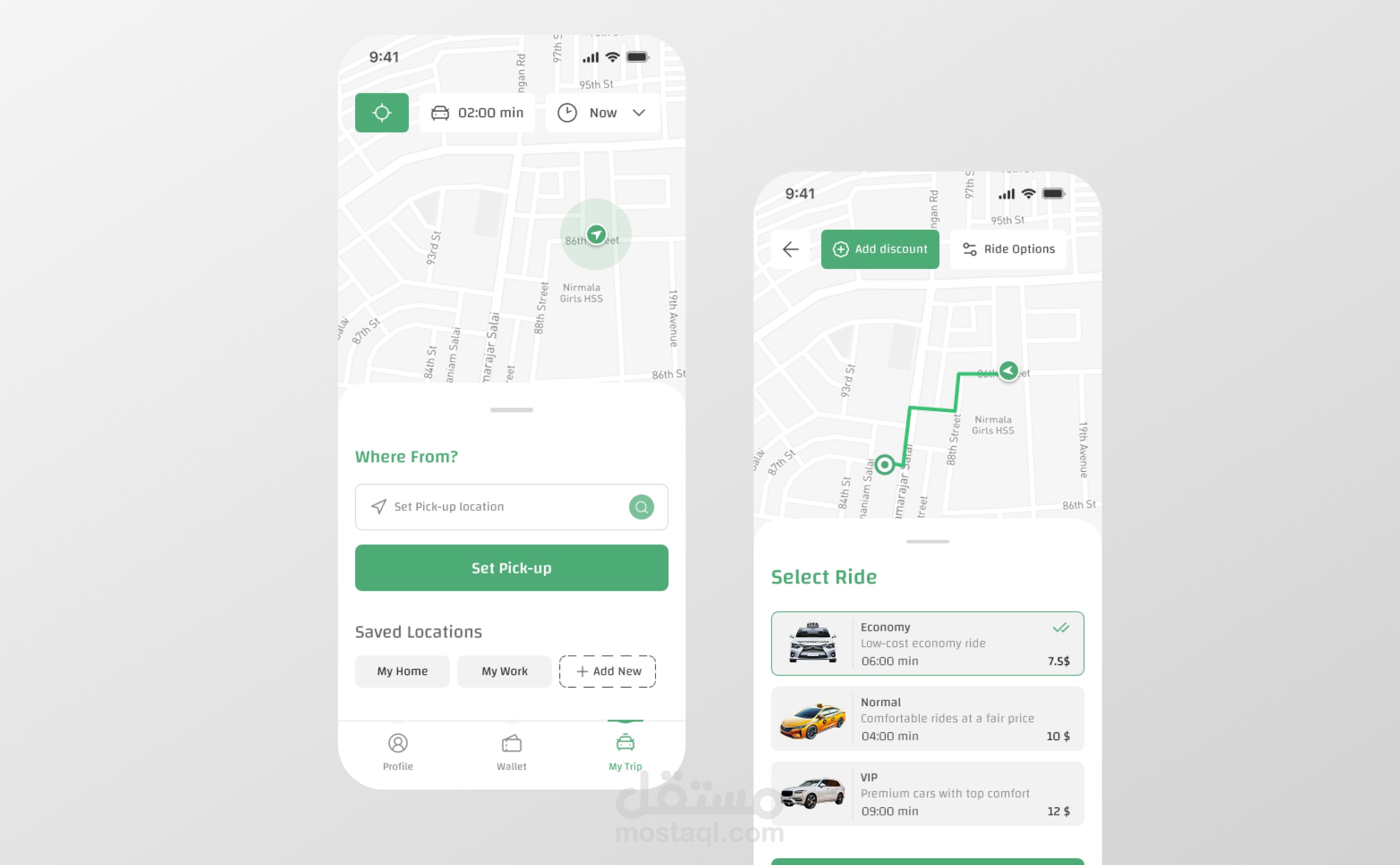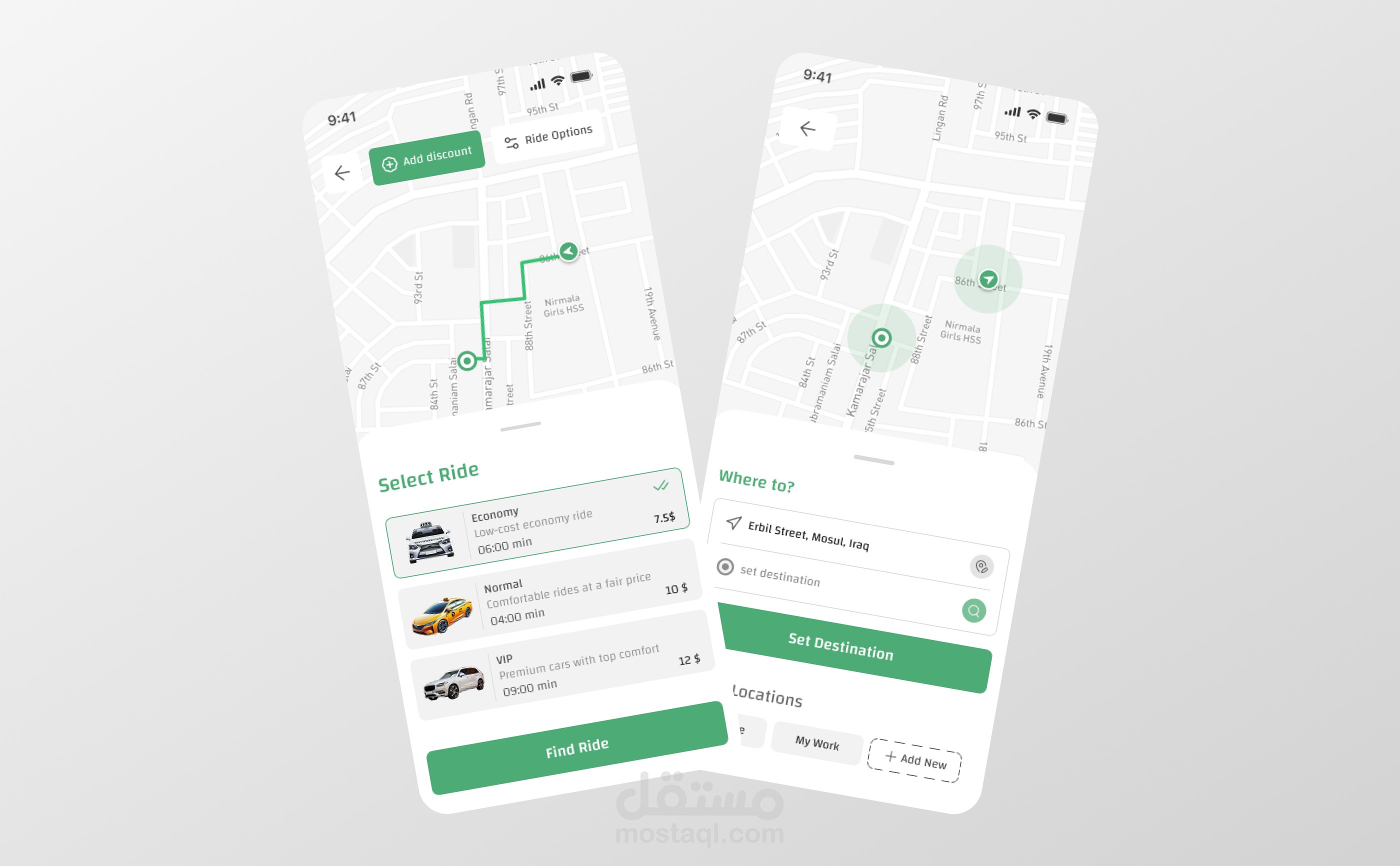 هذا المشروع عبارة عن تصميم واجهات مستخدم لتطبيق حجز سيارات الأجرة، تم تطويره بأسلوب حديث يركز على الوضوح وسهولة الاستخدام. يتضمن التصميم تجربة كاملة لرحلة المستخدم بدءاً من تحديد موقع الالتقاط، مروراً بعرض الخيارات المتاحة، وصولاً إلى اختيار المركبة وتتبع المسار على الخريطة.