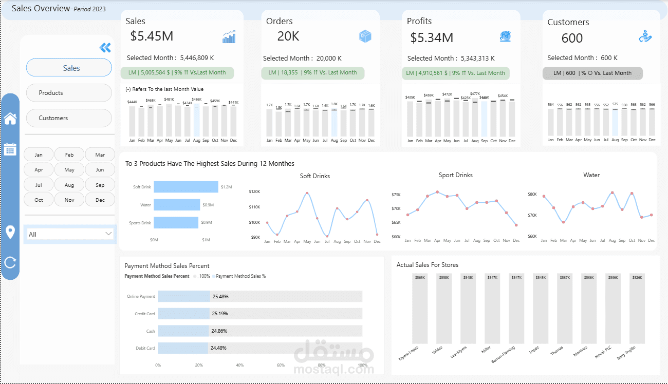 بعد تحليل البيانات وانشاء ال KPIS حسب طلب العميل