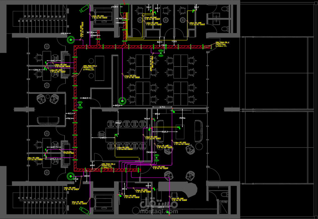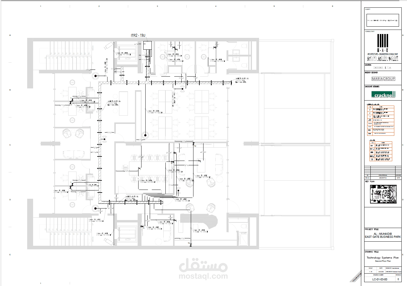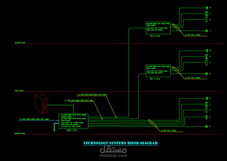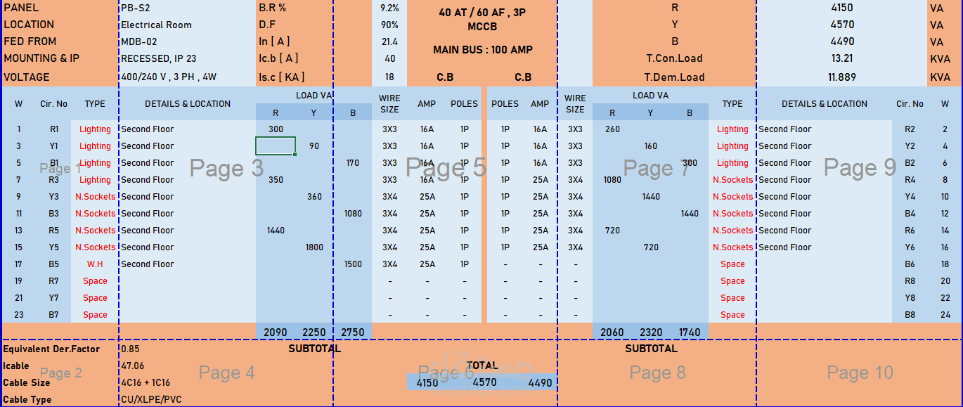 كما يتضمن تصميم أنظمة Fire Alarm و Data & CCTV، مع إعداد SLD و Panel Schedule، وإجراء حسابات مقاسات Cable Trunk Sizing بدقة
