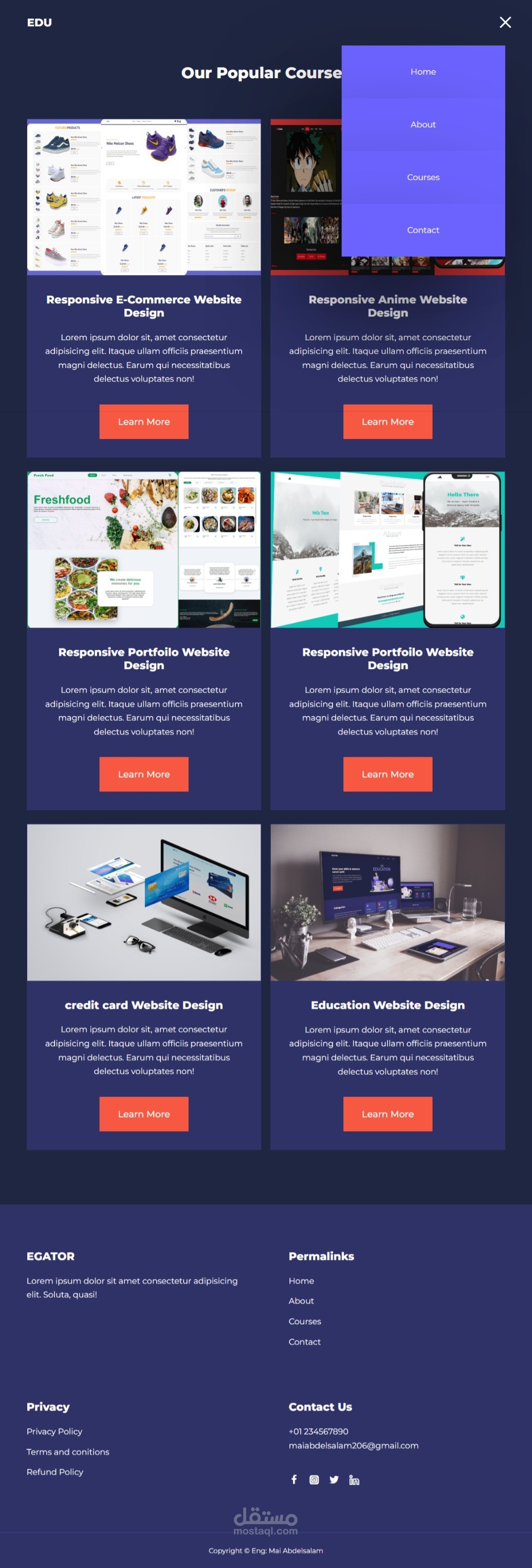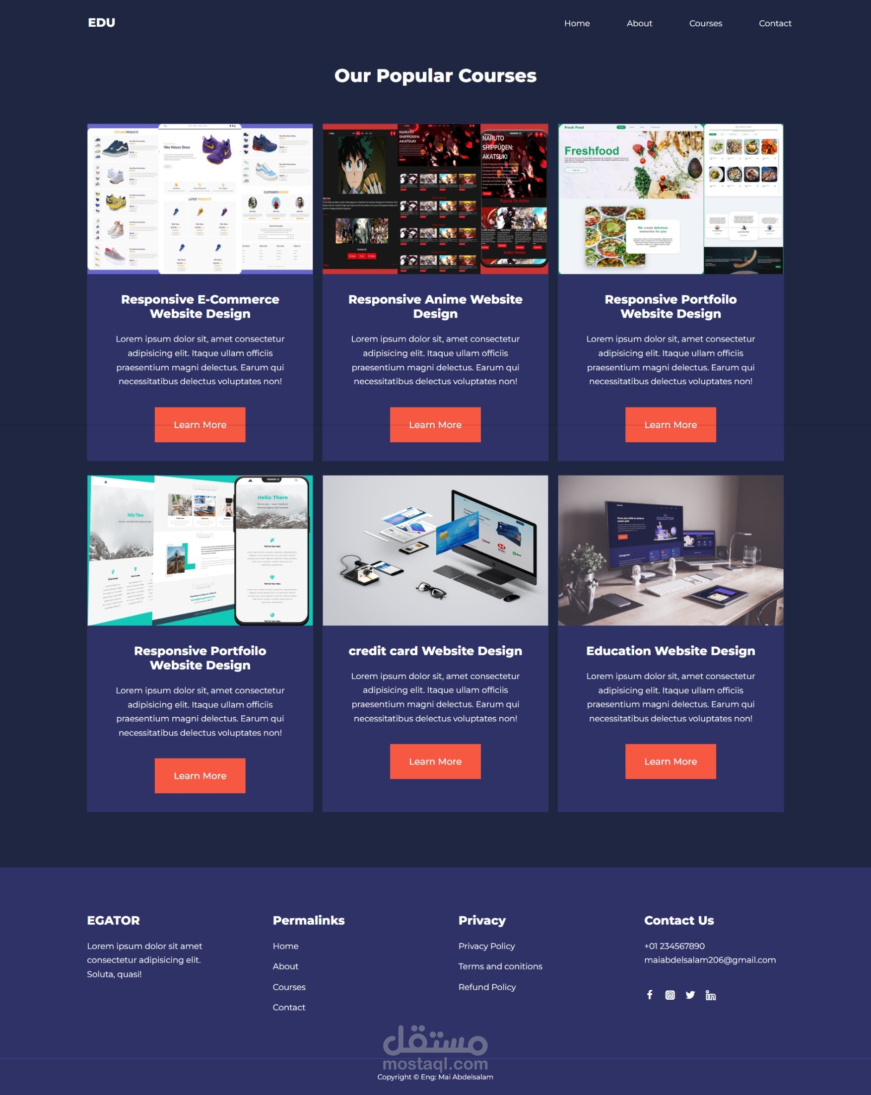 Courses Page: عرض منظم للكورسات مع تصميم مرتب يسهل التصفح.