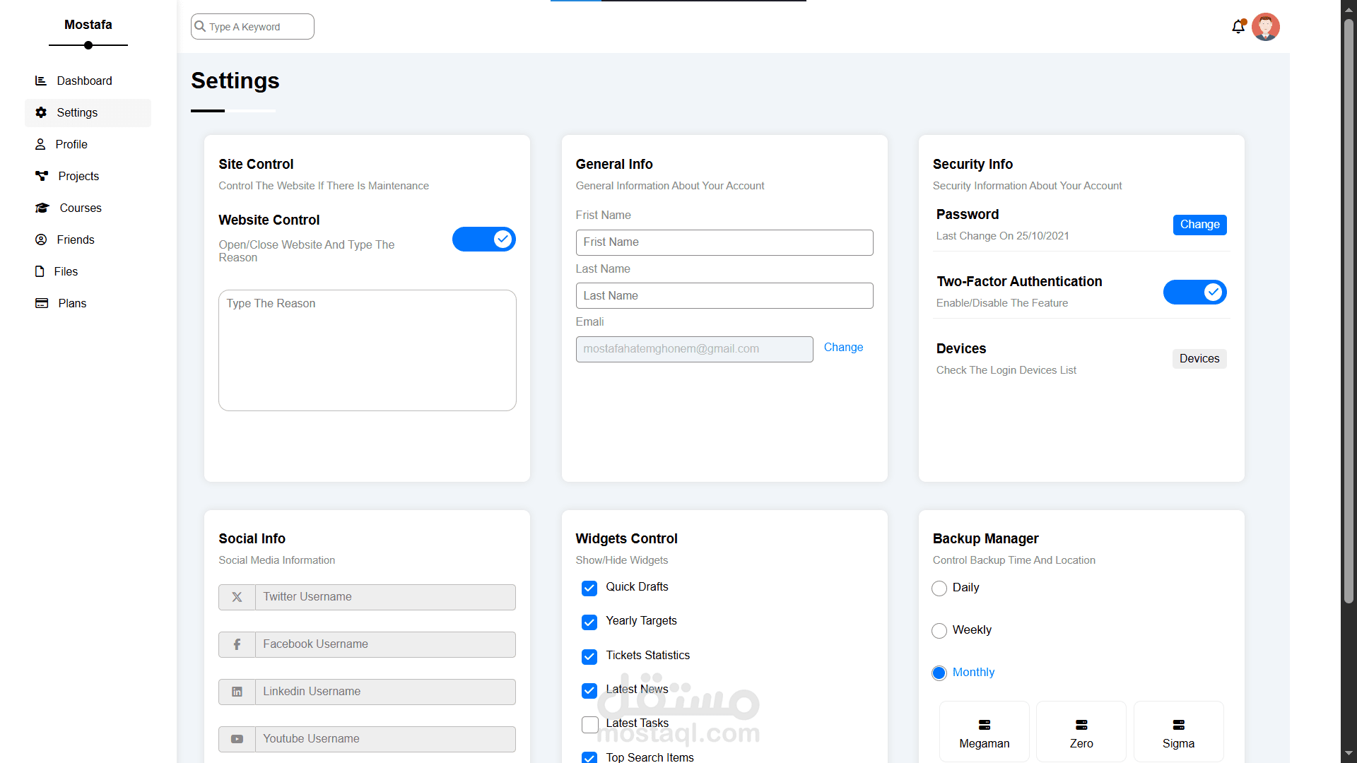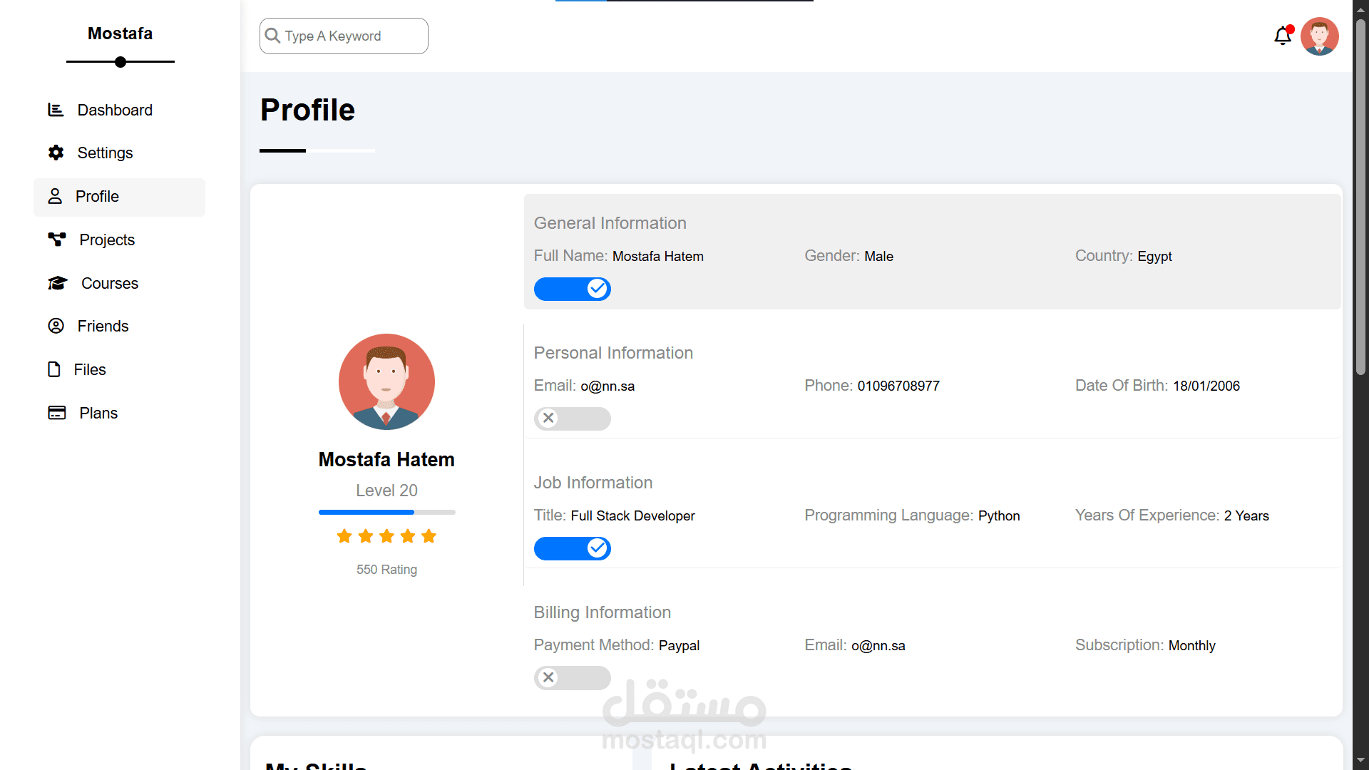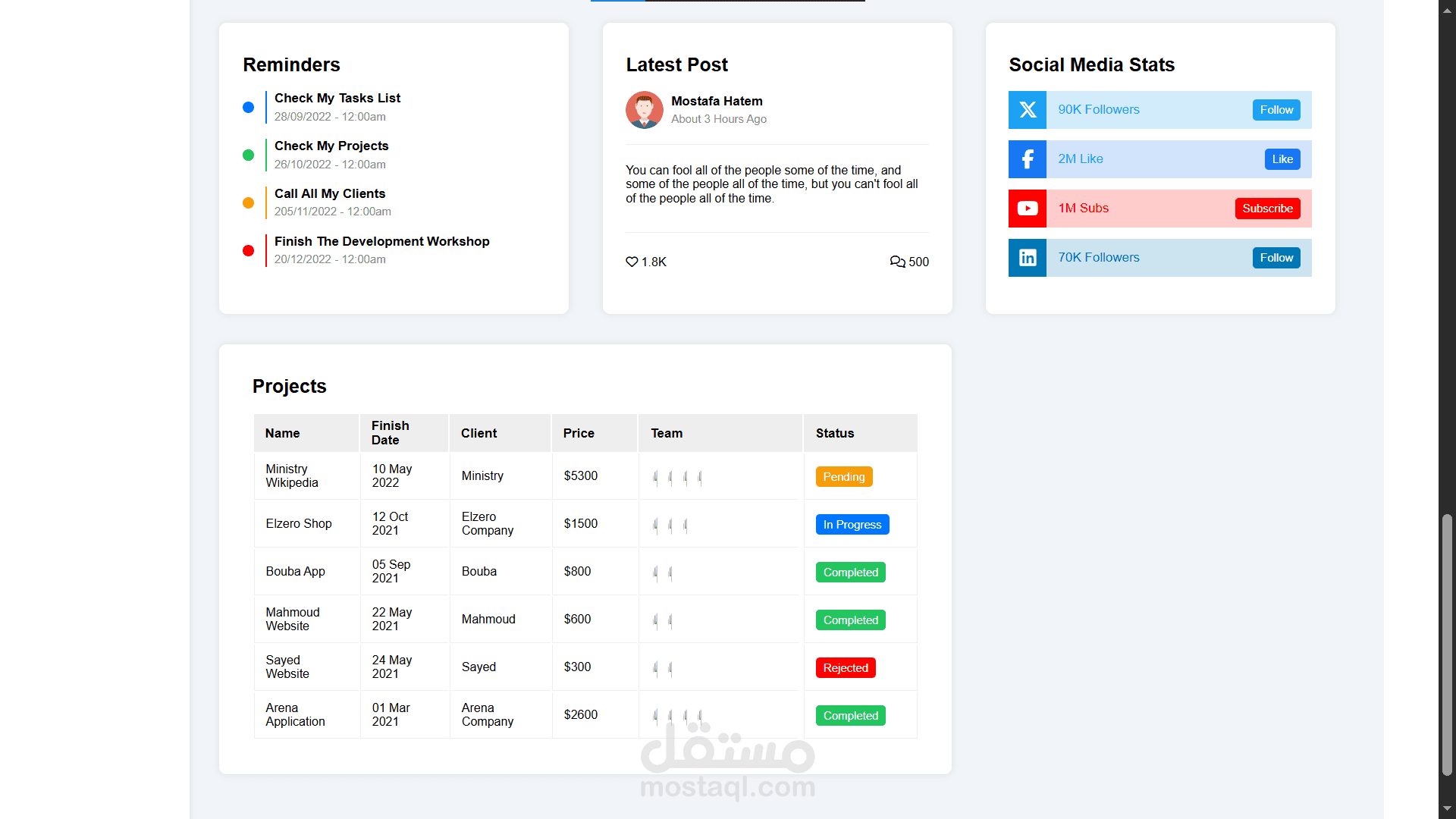 مشروع Dashboard UI هو واجهة تحكم تفاعلية تم تصميمها باستخدام تقنيات Frontend حديثة، بهدف عرض بيانات ومعلومات بشكل منظم واحترافي مع تجربة مستخدم سلسة.