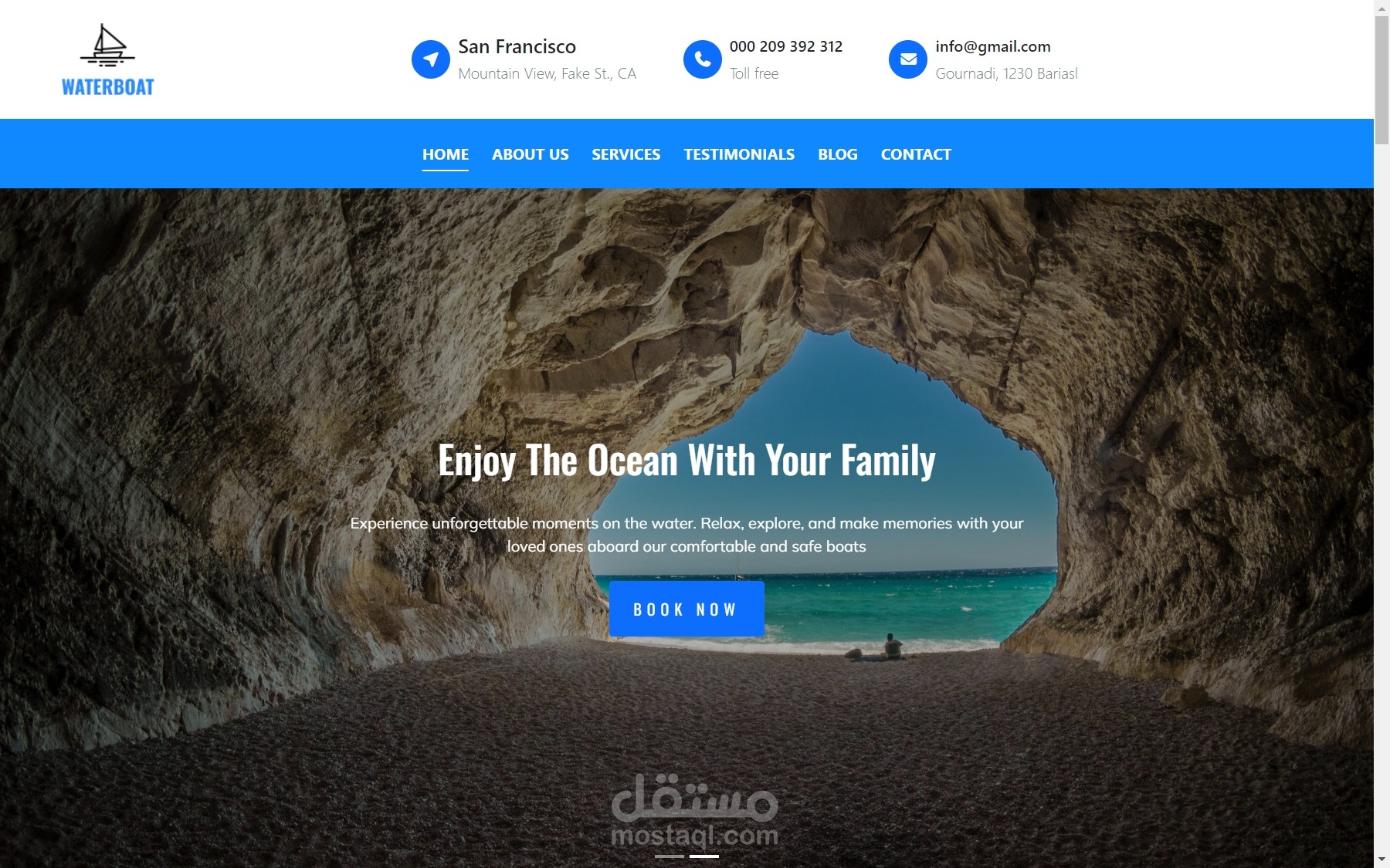 قمت بتطوير واجهة موقع ترويجي لخدمات الرحلات البحرية، يعرض تجربة القوارب والمميزات التي يتم تقديمها بشكل جذاب وواضح. يعتمد الموقع على تصميم بصري قوي يلفت انتباه الزائر ويقدم له المعلومات الأساسية بطريقة مرتّبة وسهلة الفهم.