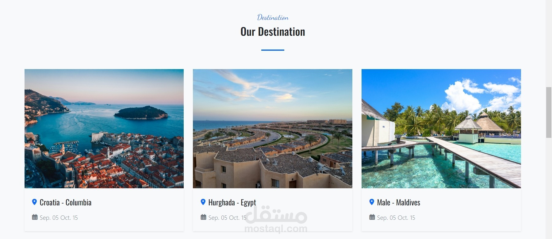 - تصميم واضح وبسيط يركّز على عرض خدمات الرحلات البحرية
