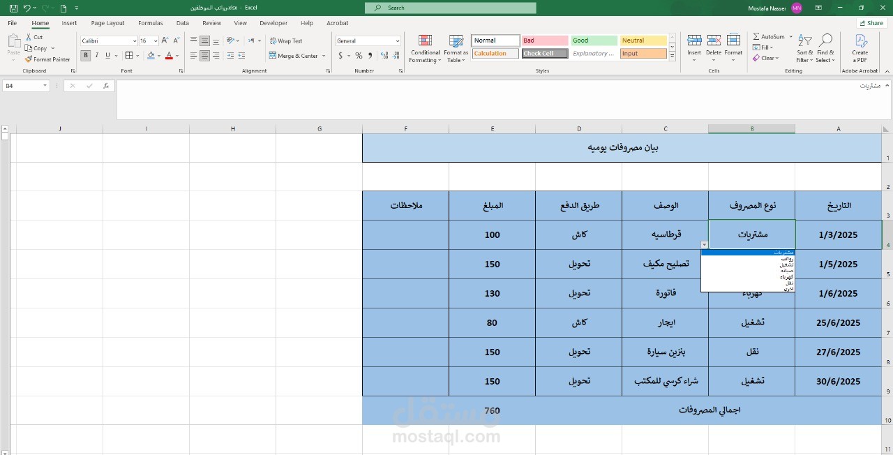 هذا الملف يساعد أي صاحب مشروع على تتبع مصروفاته بدقة وبدون أخطاء.