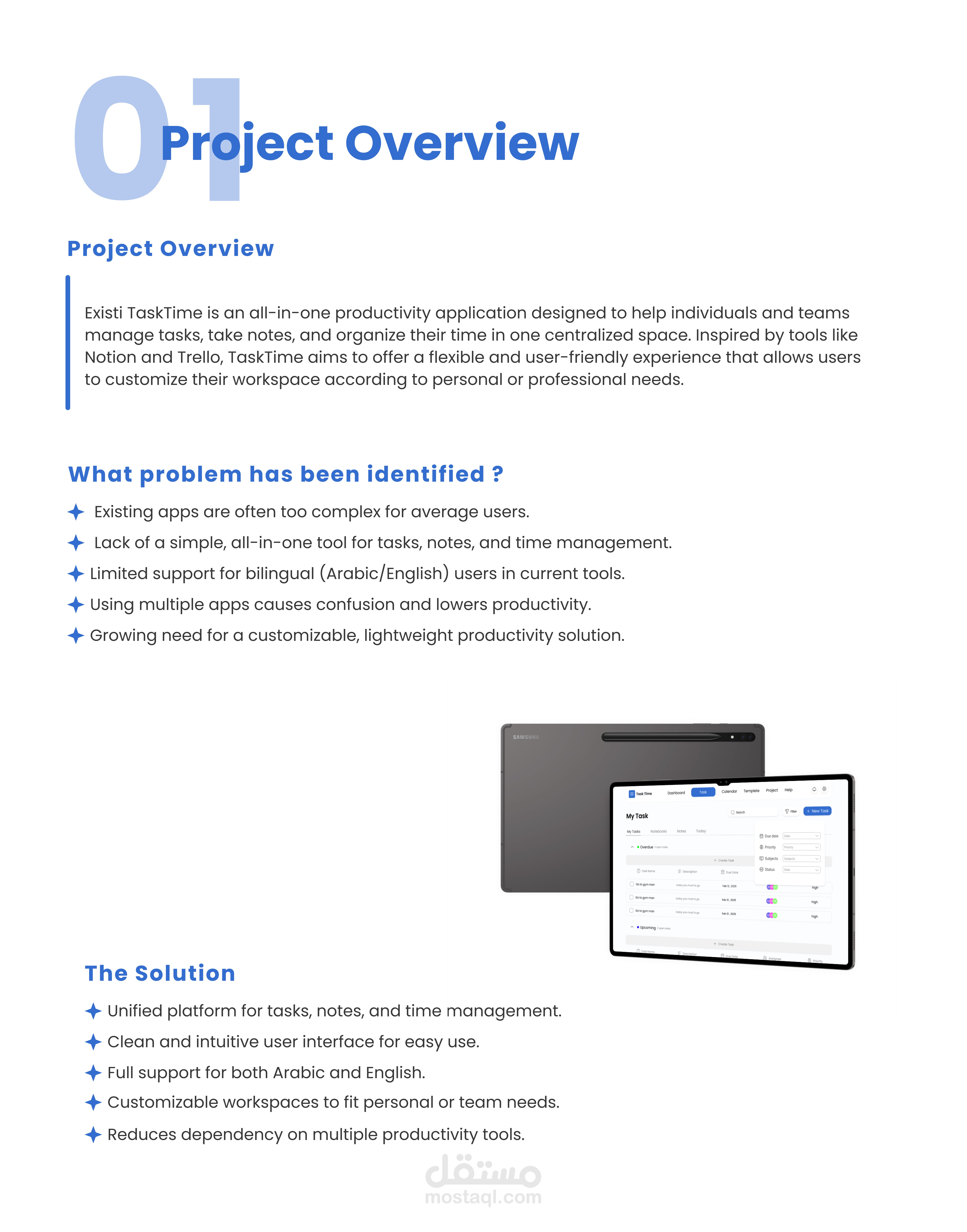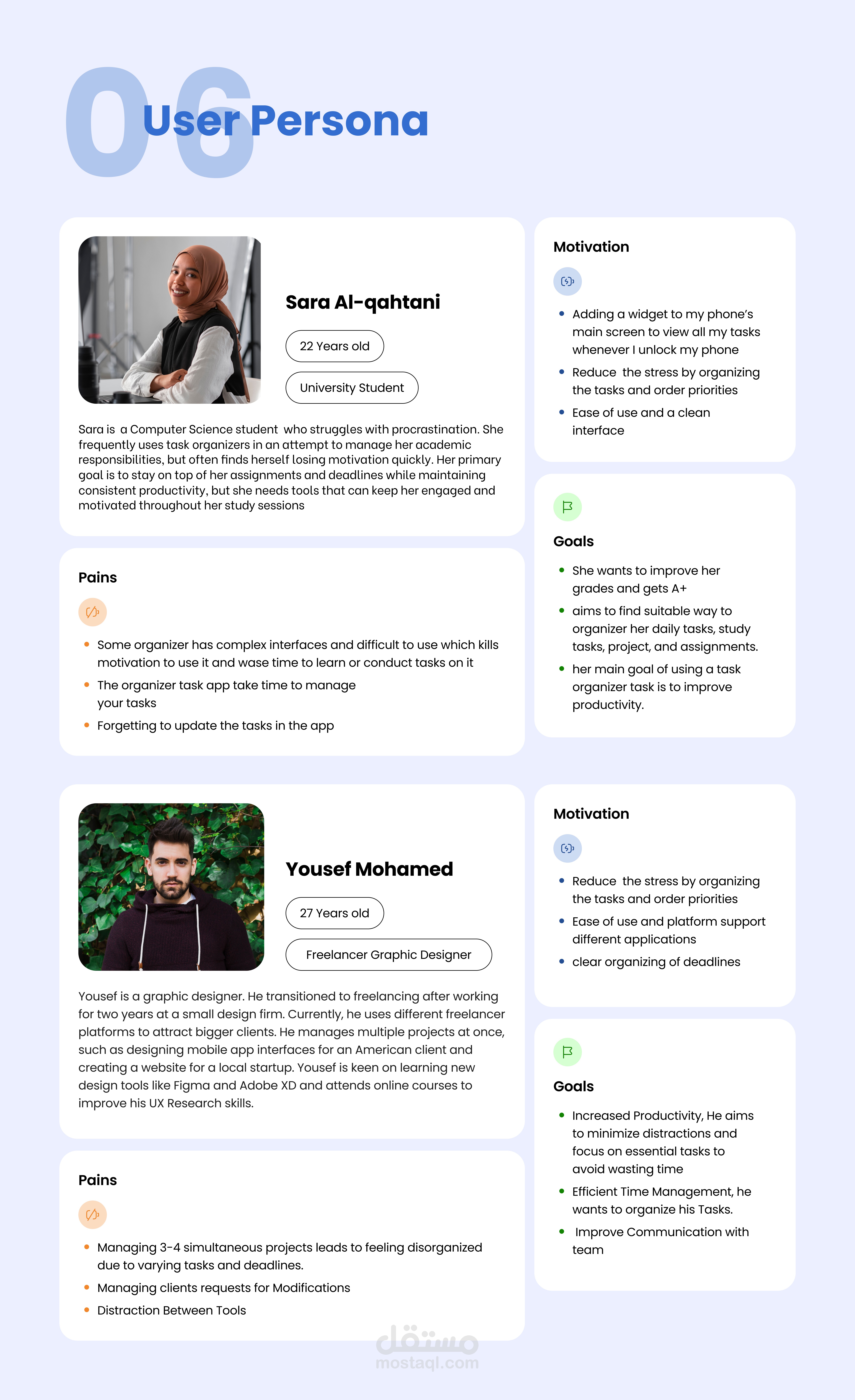 مشروع Task Time هو موقع ويب لتنظيم مهام الدراسة يساعد الطلاب على إدارة وقتهم ومتابعة مهامهم الدراسية بطريقة سهلة ومنظمة. قمنا بإجراء أبحاث وتحليل للمستخدمين لفهم احتياجاتهم وسلوكياتهم، بالإضافة إلى تحليل المنافسين لتحديد نقاط القوة والضعف في السوق. كما صممنا هيكلية المعلومات (IA) للموقع وجرينا اختبارات سهولة الاستخدام (Usability Testing) لضمان تجربة مستخدم سلسة وفعّالة. يتيح الموقع إنشاء المهام، ترتيب أولوياتها، وتتبع التقدم، مع واجهة تصميم بسيطة تركز على زيادة الإنتاجية وتنظيم الوقت بشكل فعّال.