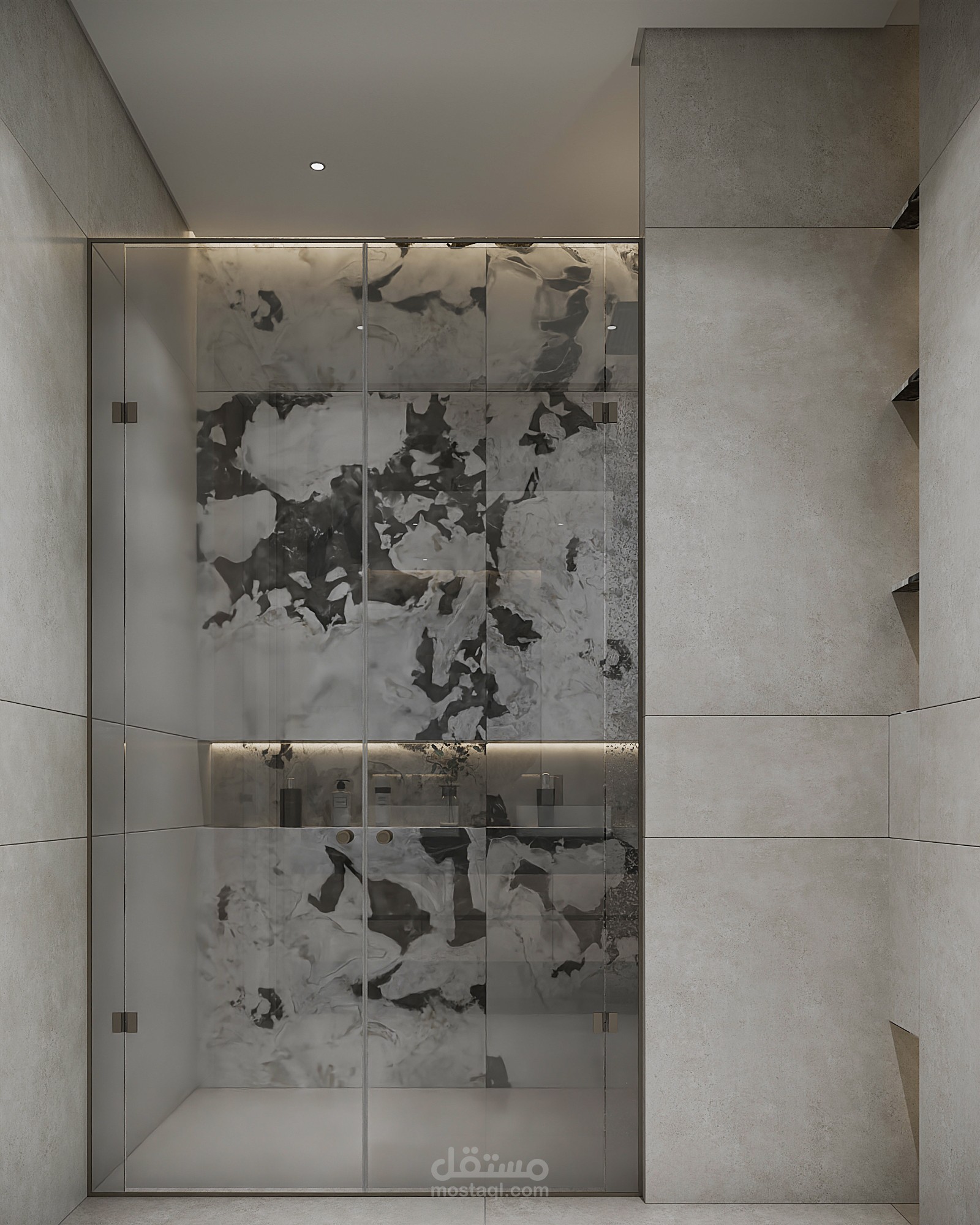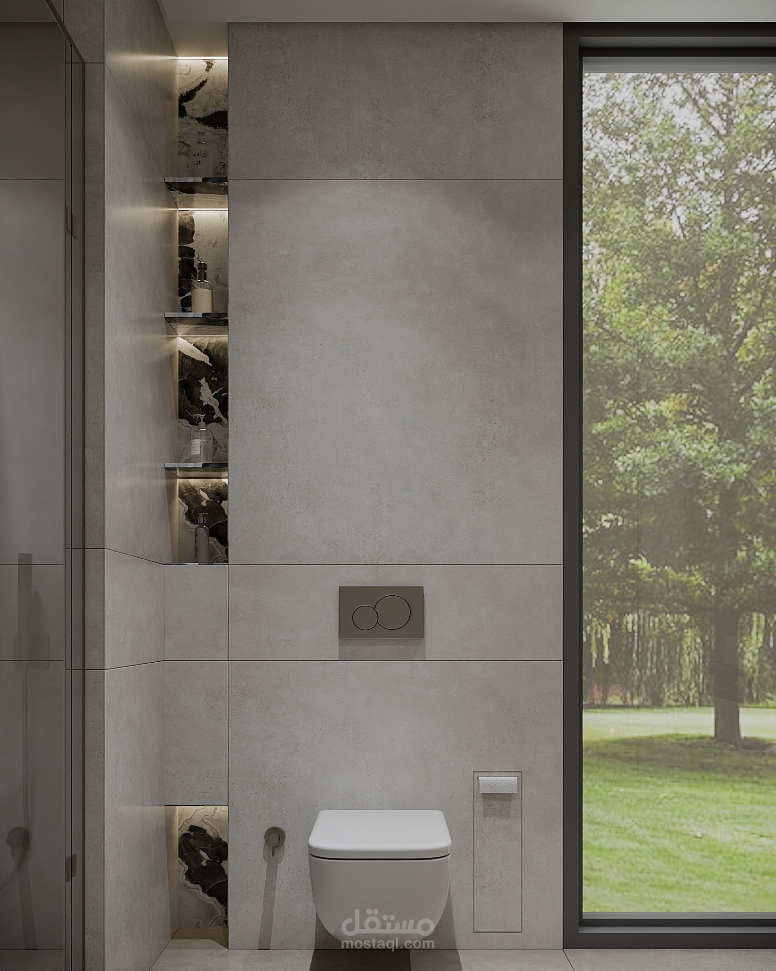 Where elegance meets serenity This modern bathroom combines minimal lines, warm lighting, and calming neutrals to create a spa-like escape right at home.