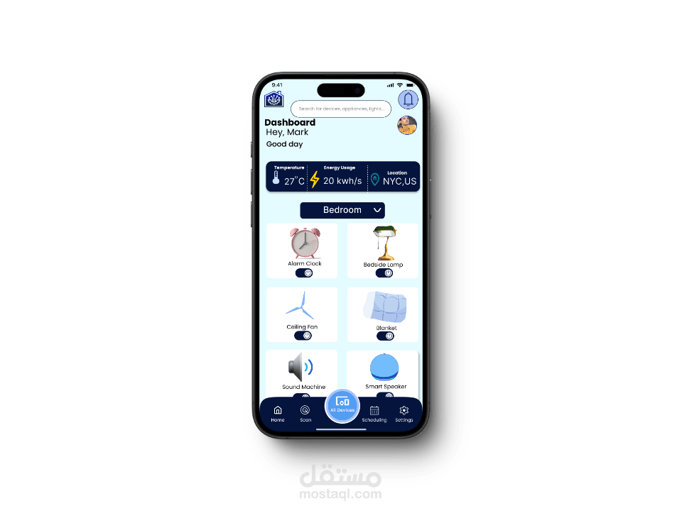 تطبيق Smart Home متكامل للأجهزة المحمولة (Android و iOS)، باستخدام أداة Figma وبالاعتماد على مجموعة من Plugins المتخصصة لتحسين جودة التصميم وسرعة الإنتاج.