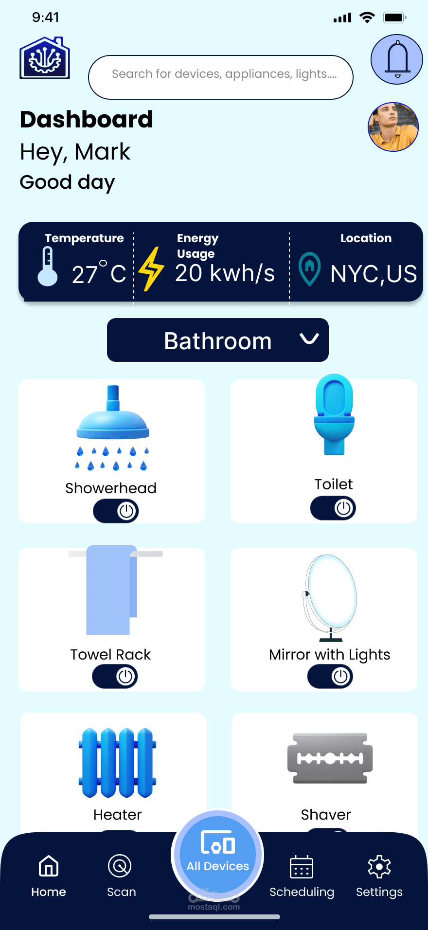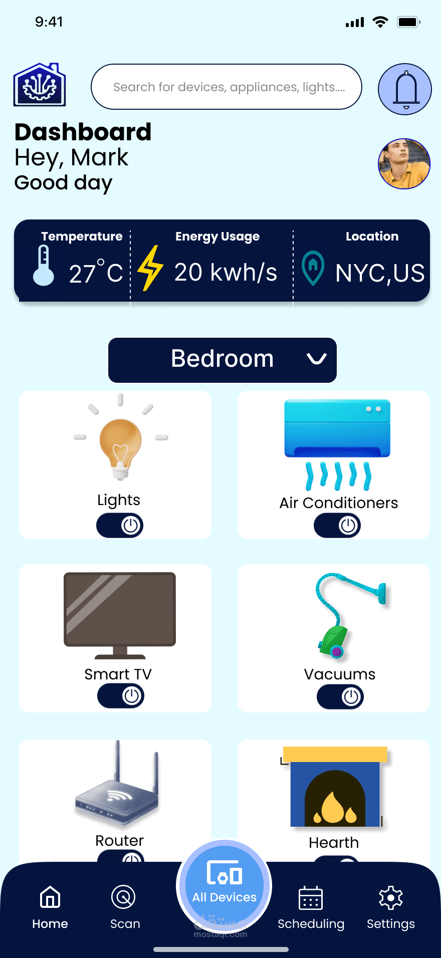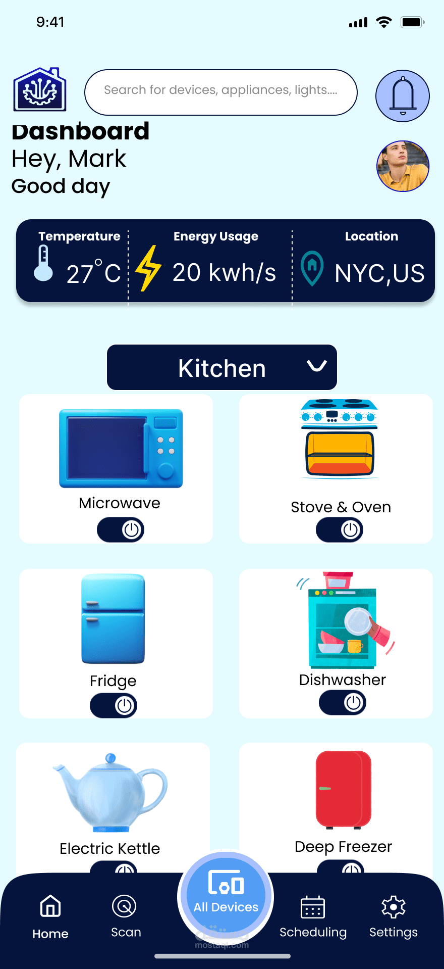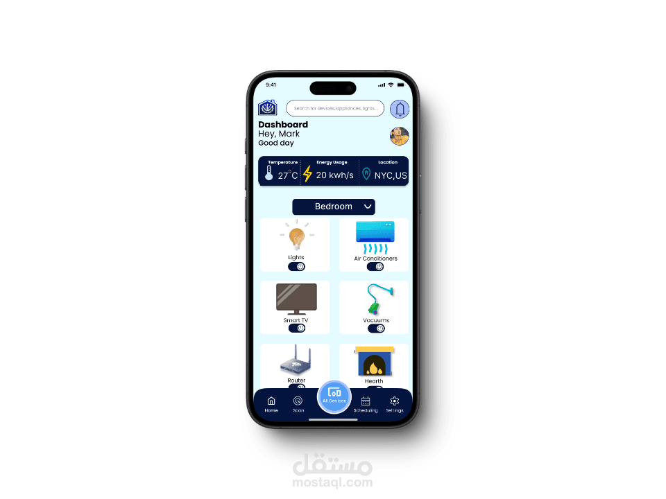 التطبيق يقدم تجربة استخدام حديثة وسلسة لإدارة جميع أجهزة المنزل الذكي في مكان واحد، مع واجهة أنيقة وسهلة الاستخدام.