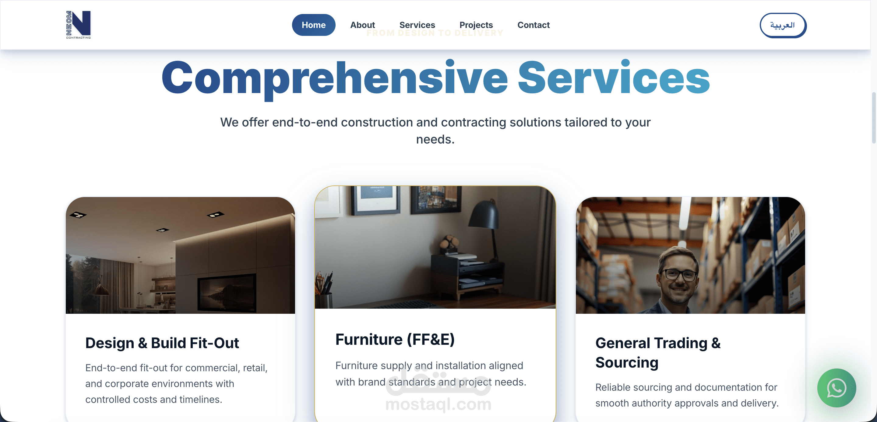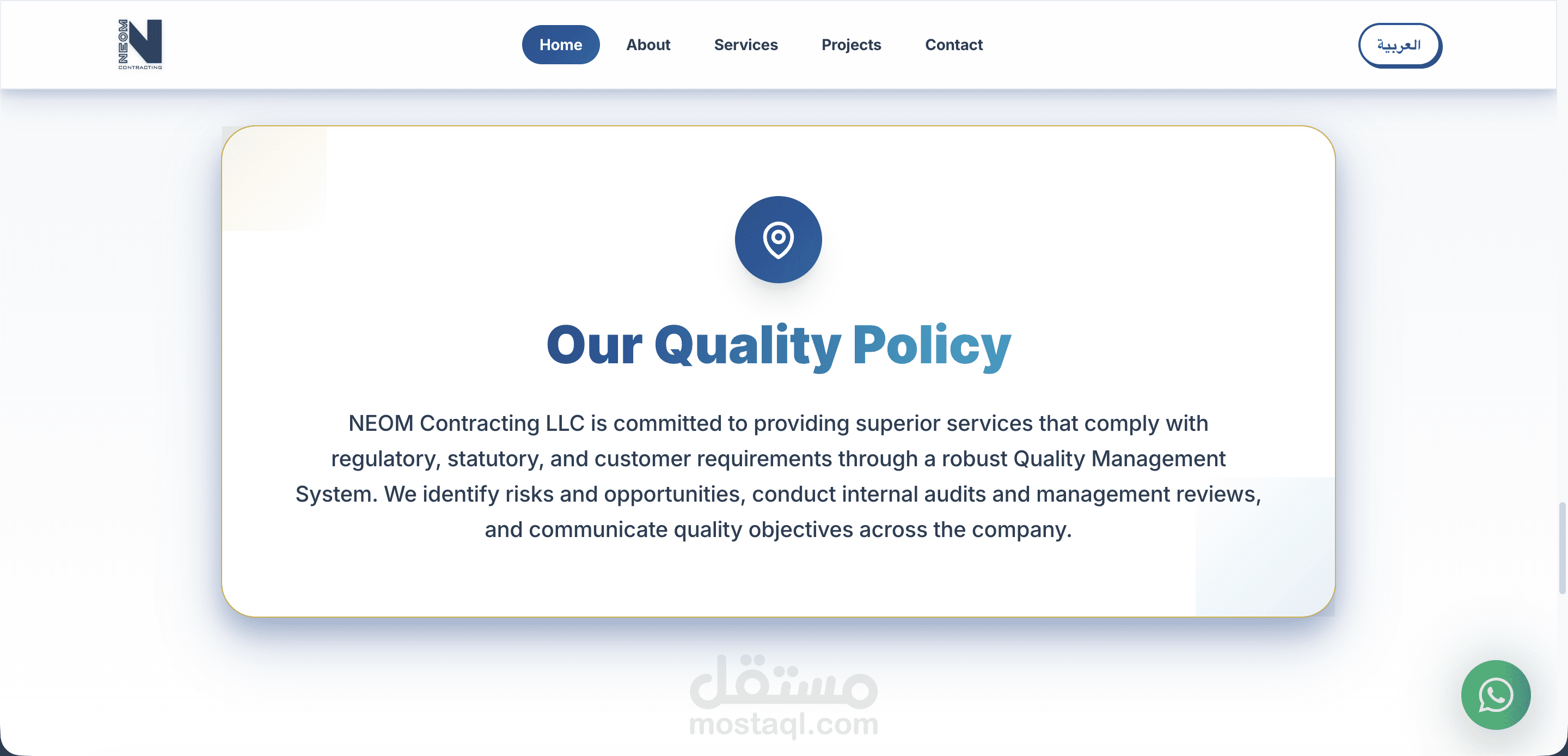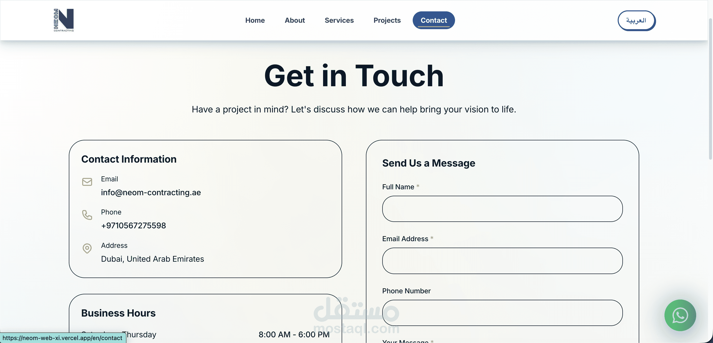 A production-grade, bilingual (English/Arabic) website for NEOM Contracting LLC built with SvelteKit and Tailwind CSS v4.
