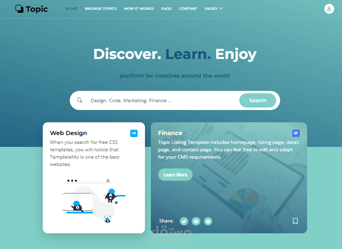 A modern, responsive topic listing website built with HTML, CSS, and JavaScript.