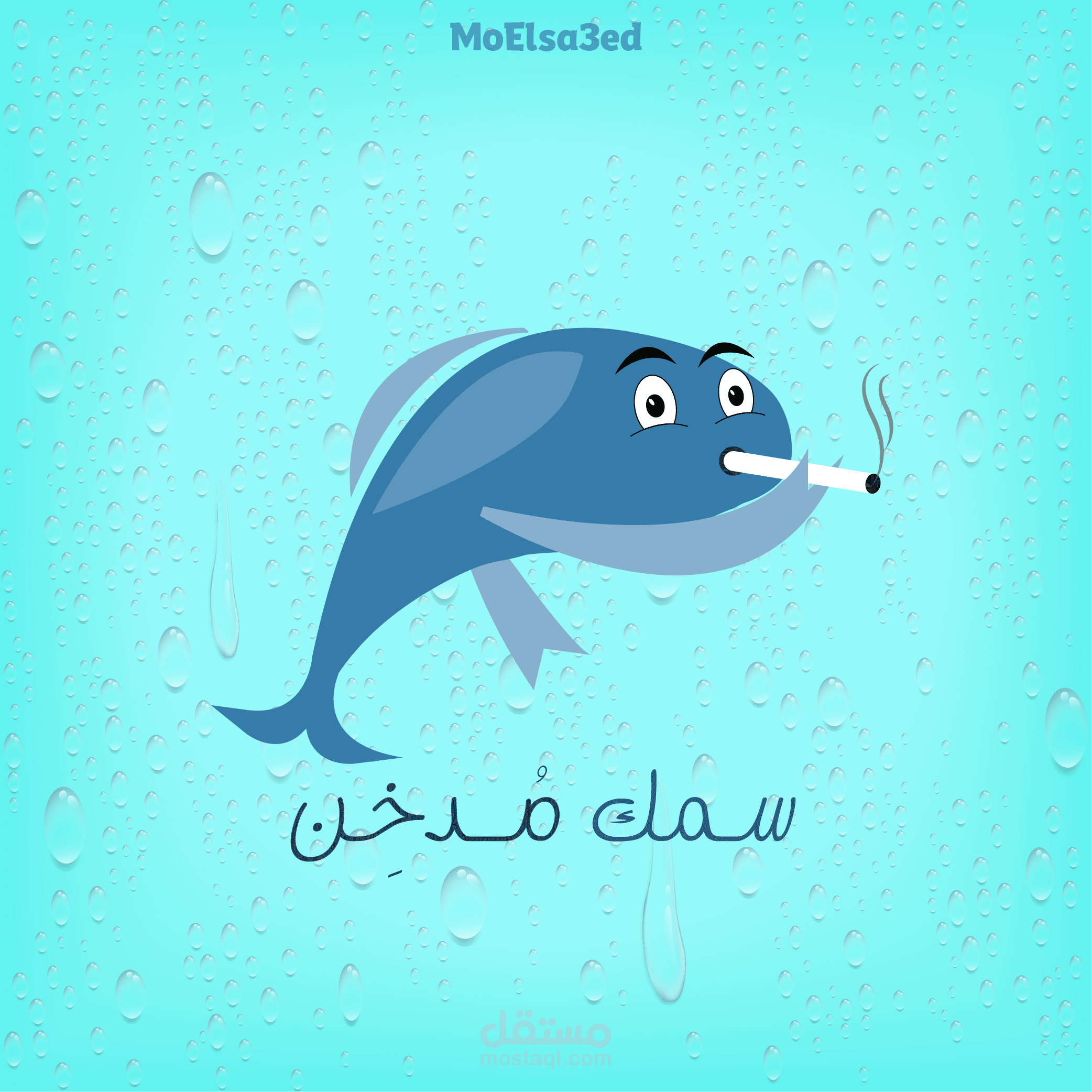 تصميم كرتوني برسم كاريكاتير لسمكة تدخن السجائر