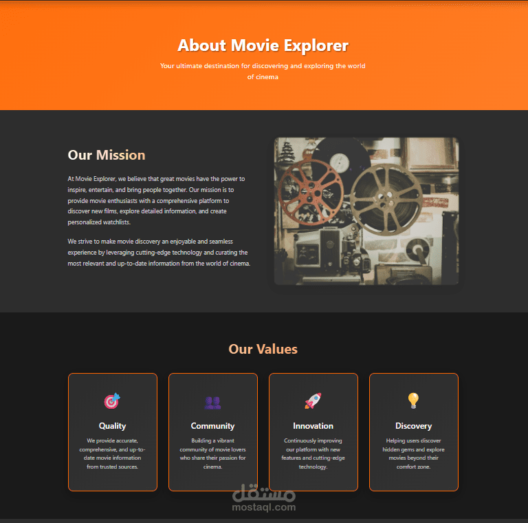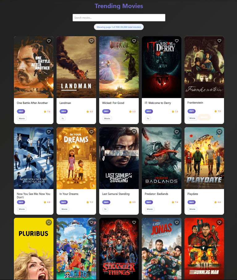 موقع TMDB Movies Explorer هو تطبيق ويب حديث ومتطور لاستكشاف الأفلام والمسلسلات، مبني بأحدث تقنيات React. يتيح لك الموقع تصفح الأفلام الشائعة، البحث عن أفلامك المفضلة، وحفظها في قائمة المفضلة الخاصة بك.
