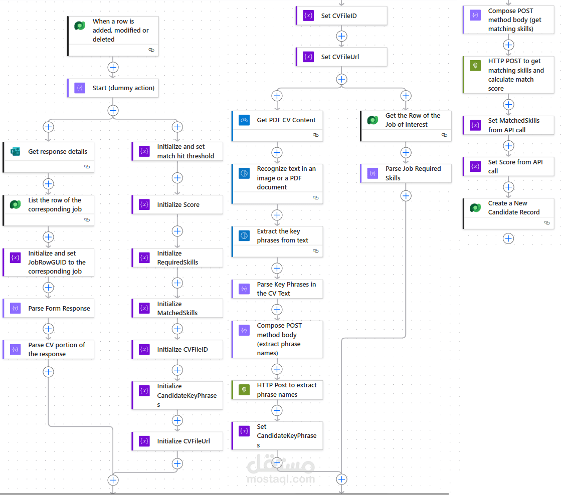 This project uses the capabilities of PowerApps and Power Automate to streamline the process of vetting job candidates leveraging a toolchain of AI technologies to analyze candidate CVs