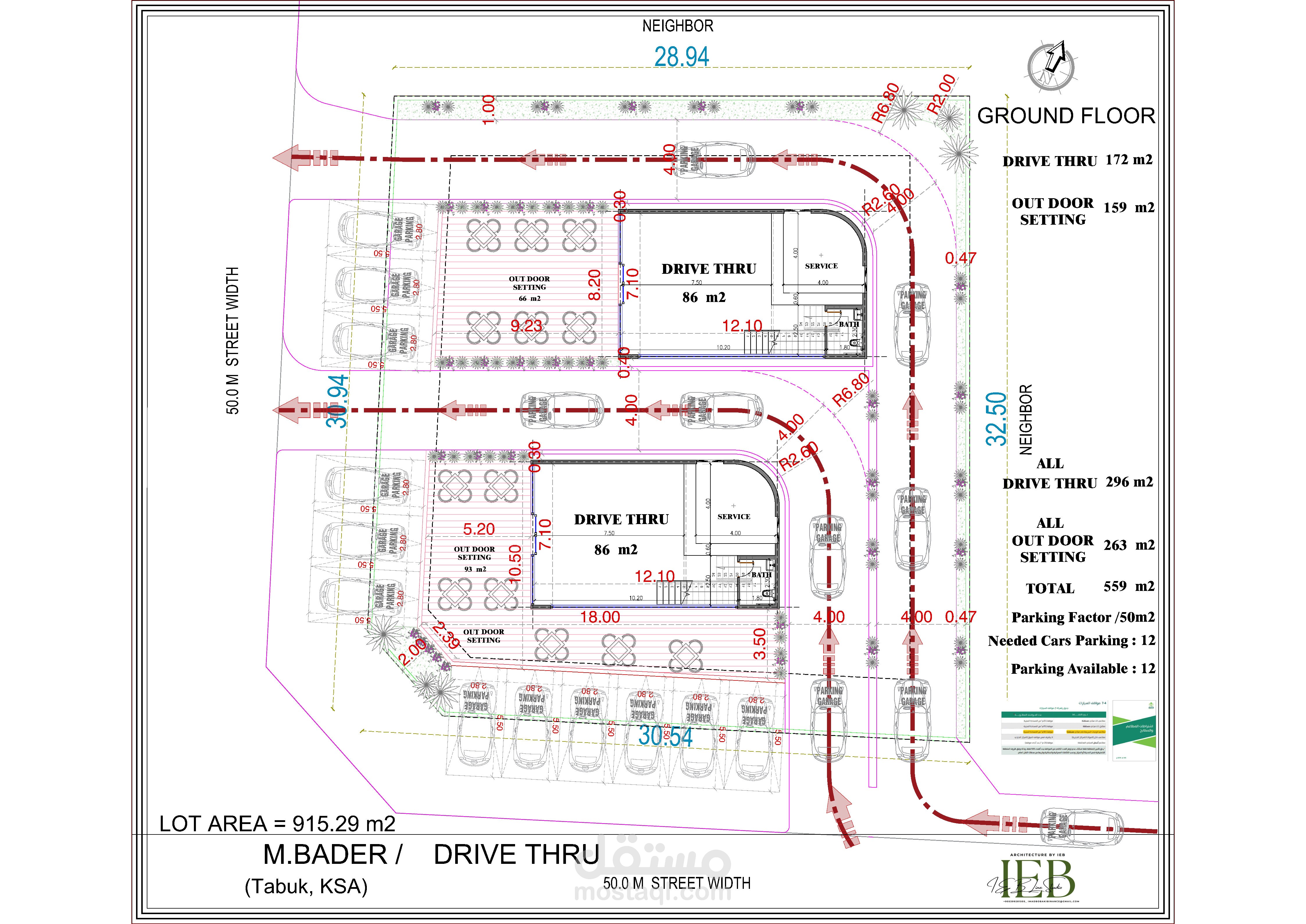 ألا أن التحدي هو تأمين حلول تتوافق مع الدراسات المرورية المعتمدة لدى أمانة تبوك وطلبات السادة العملاء وتحقيق أكبر استفادة استثمارية للموقع
