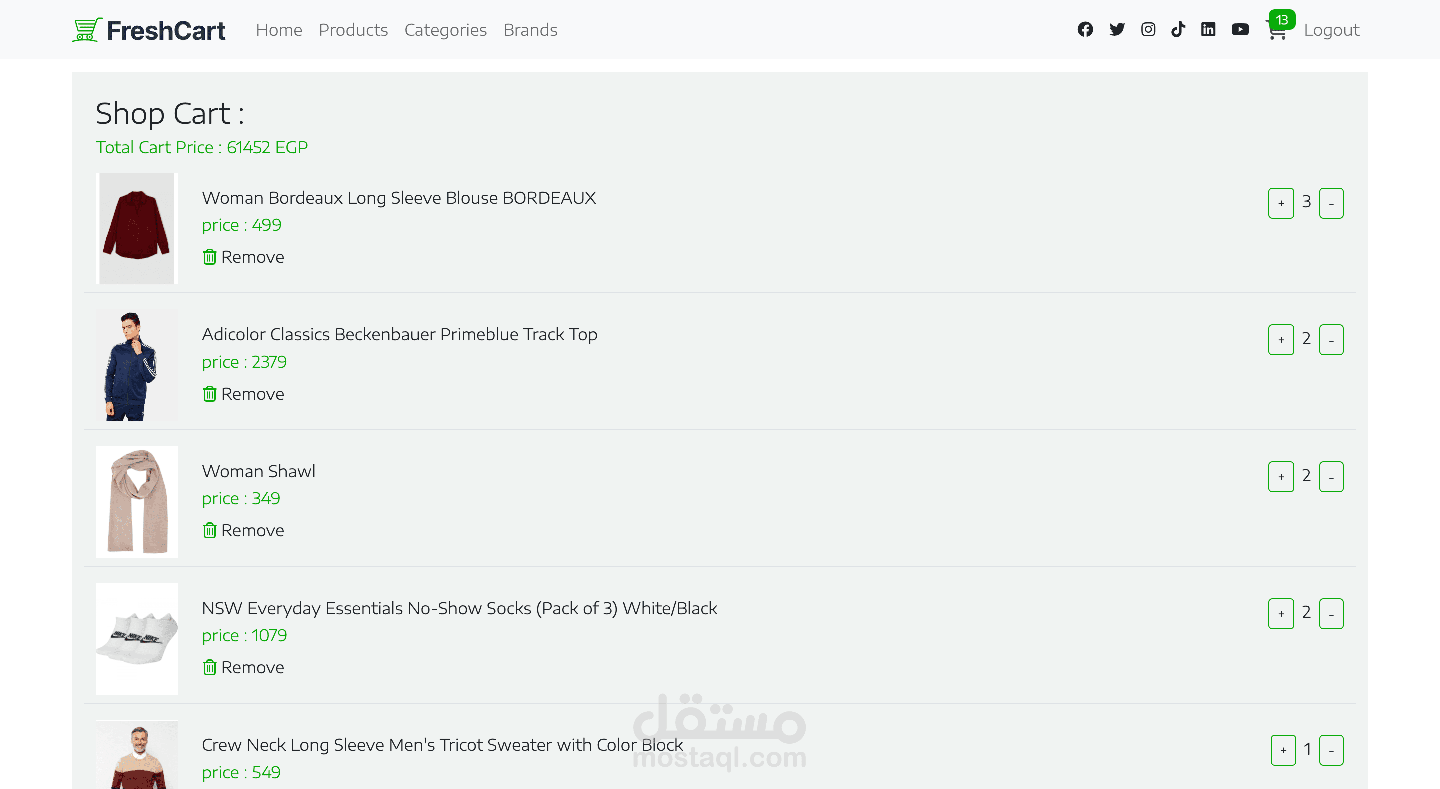 عربة التسوق: إضافة وحذف المنتجات بسهولة مع تحديث تلقائي للسعر الإجمالي.