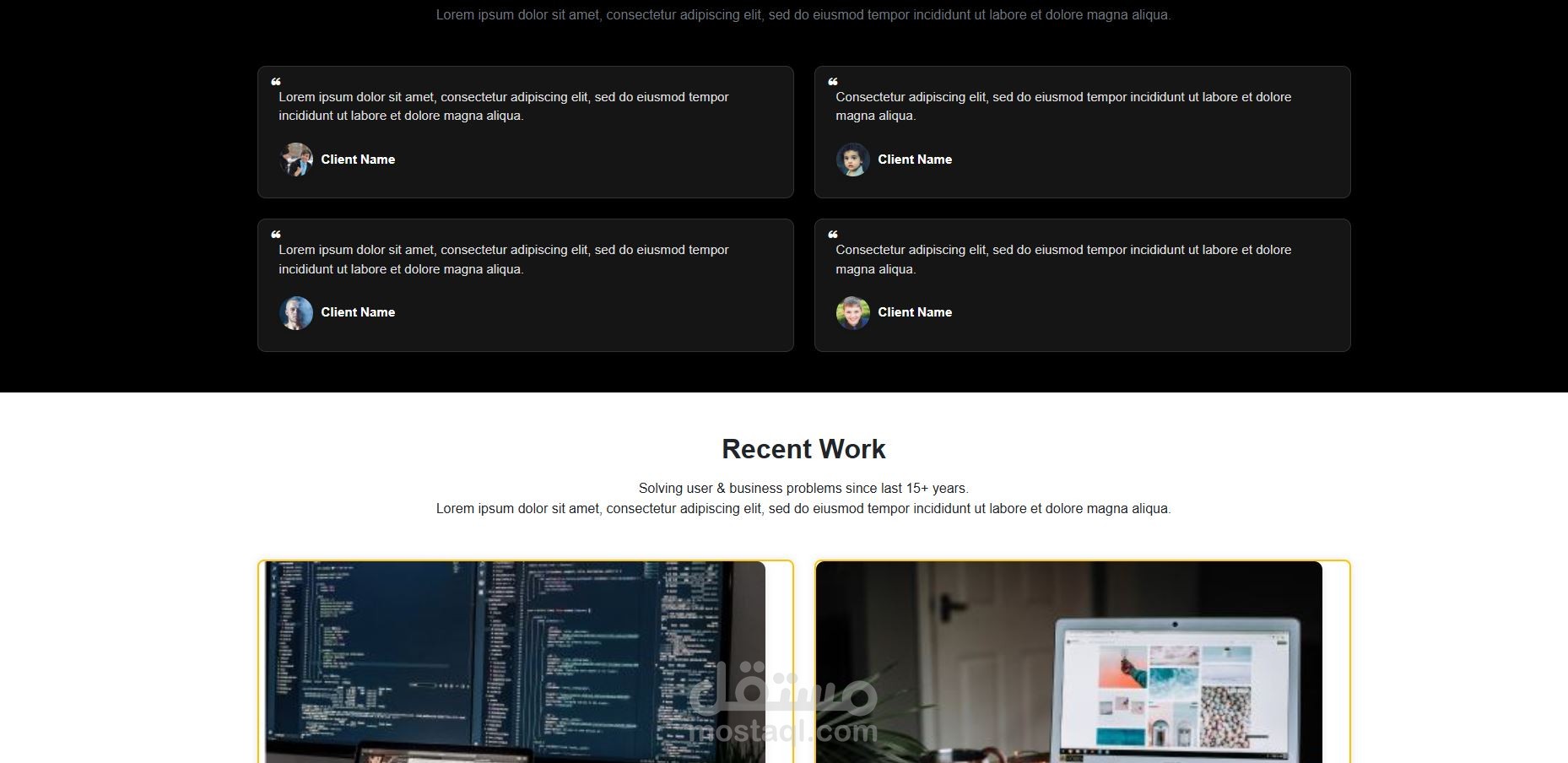 تركّز الصفحة على عرض المشاريع بطريقة واضحة، مع استخدام ألوان مريحة، وتنسيق بسيط يناسب جميع الأجهزة.