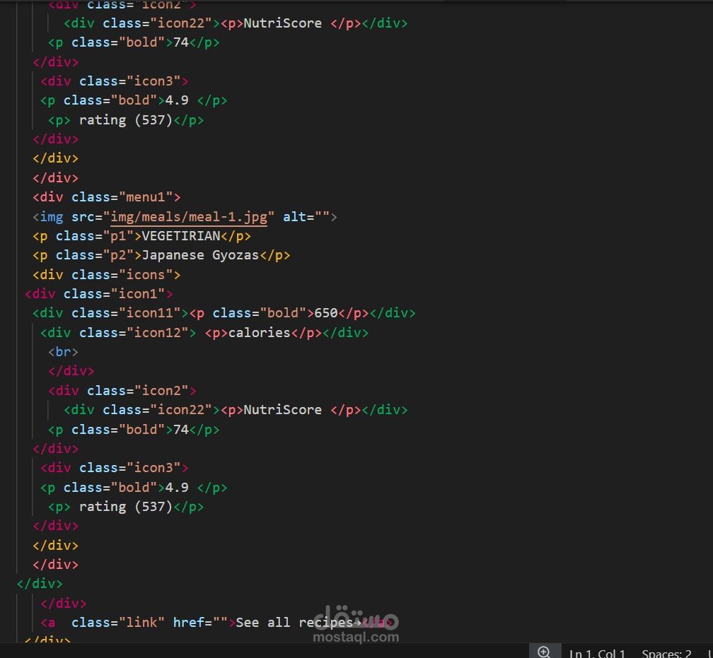 معرض وجبات (Meals Section) بتنسيق بسيط وجذاب