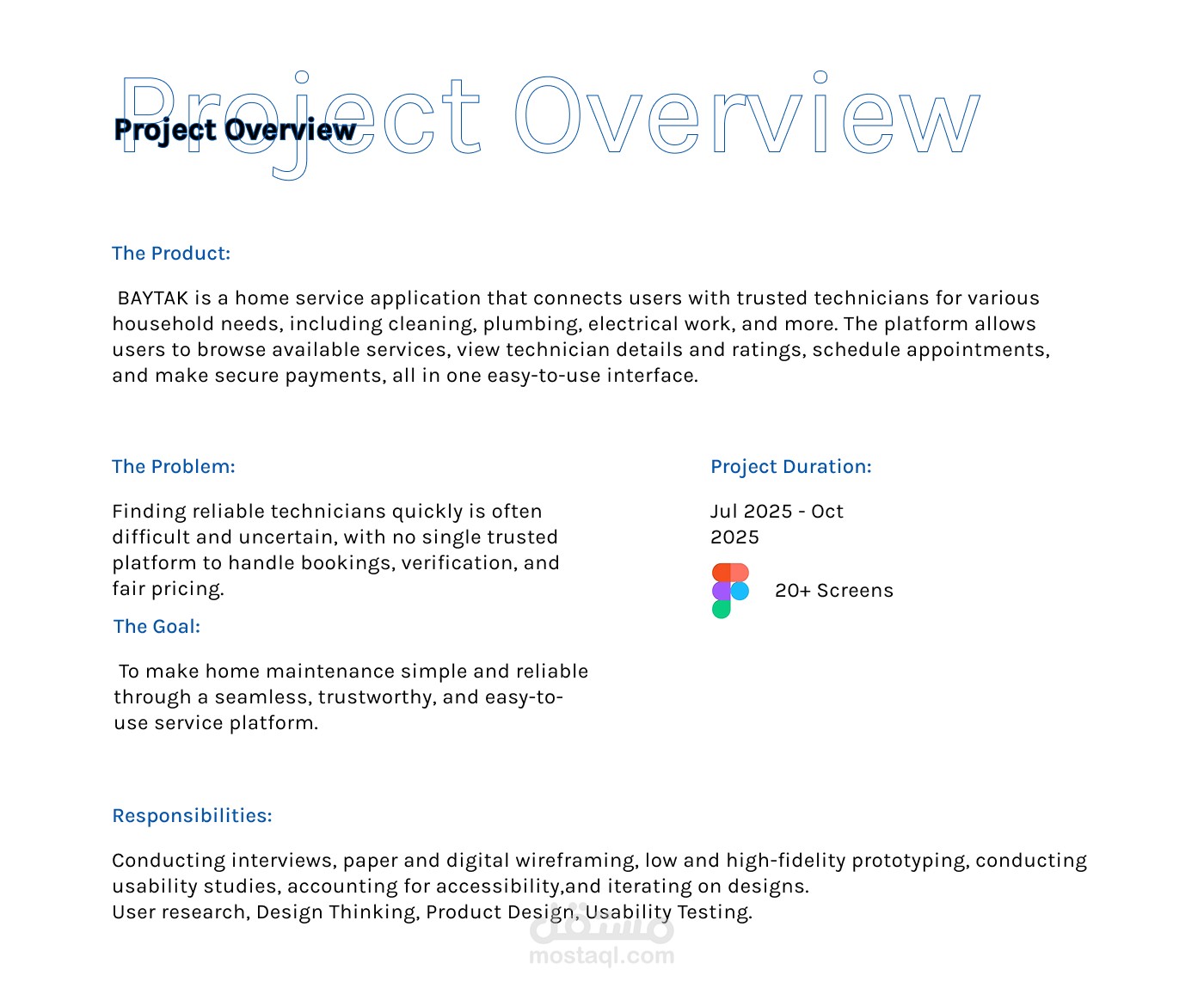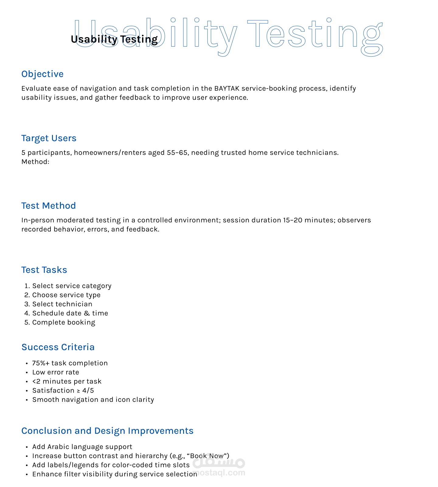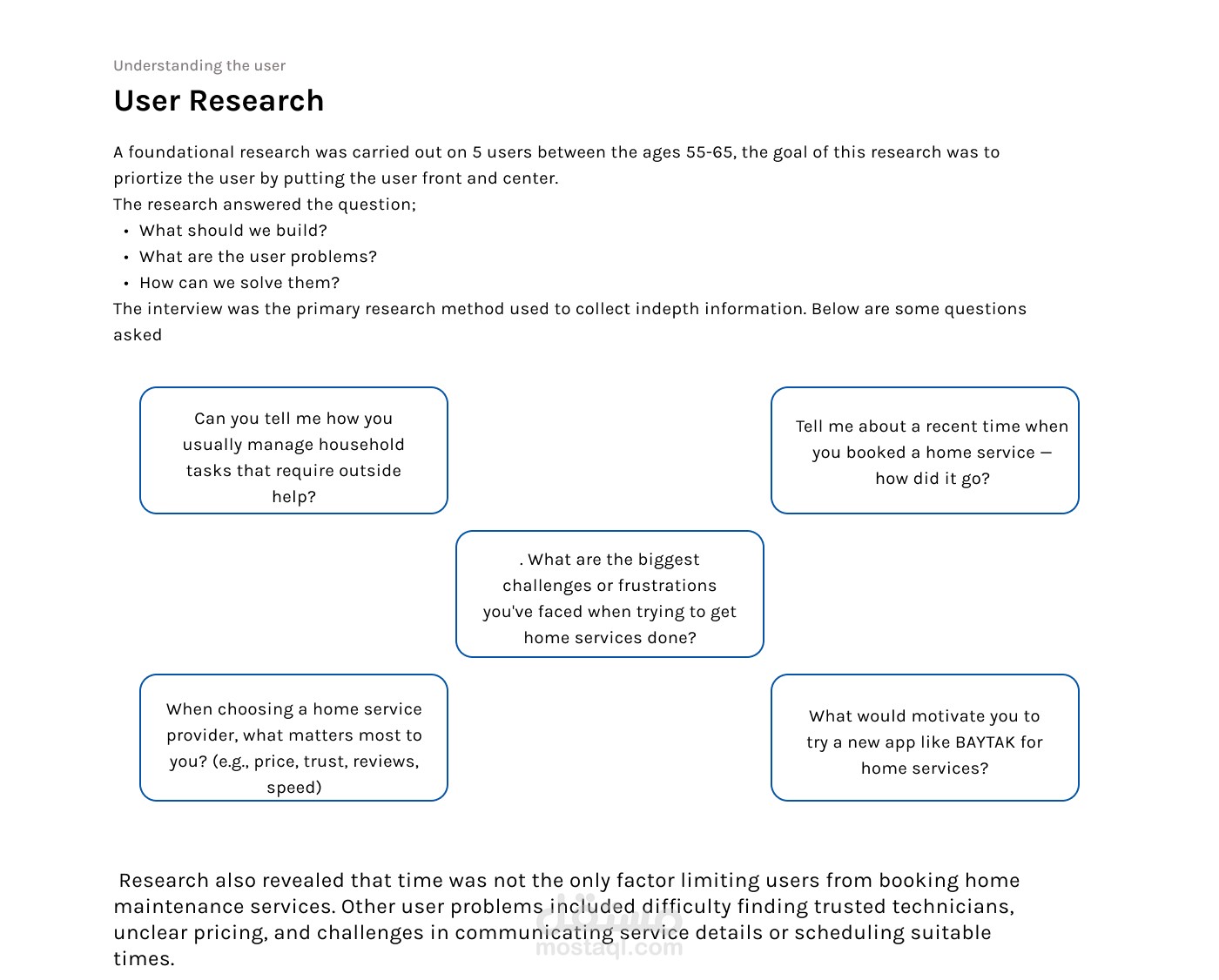 تهدف هذه الدراسة إلى تقديم تحليل شامل ومتكامل لتجربة المستخدم (UX) الخاصة بتطبيق بيتك، وهو تطبيق يقدم مجموعة واسعة من الخدمات المنزلية داخل السوق المصري. تعتمد الدراسة على منهجيات احترافية في البحث والتحليل والتصميم بهدف بناء تجربة استخدام عالية الجودة تُسهِم في تعزيز رضا المستخدم وزيادة كفاءة تقديم الخدمة.