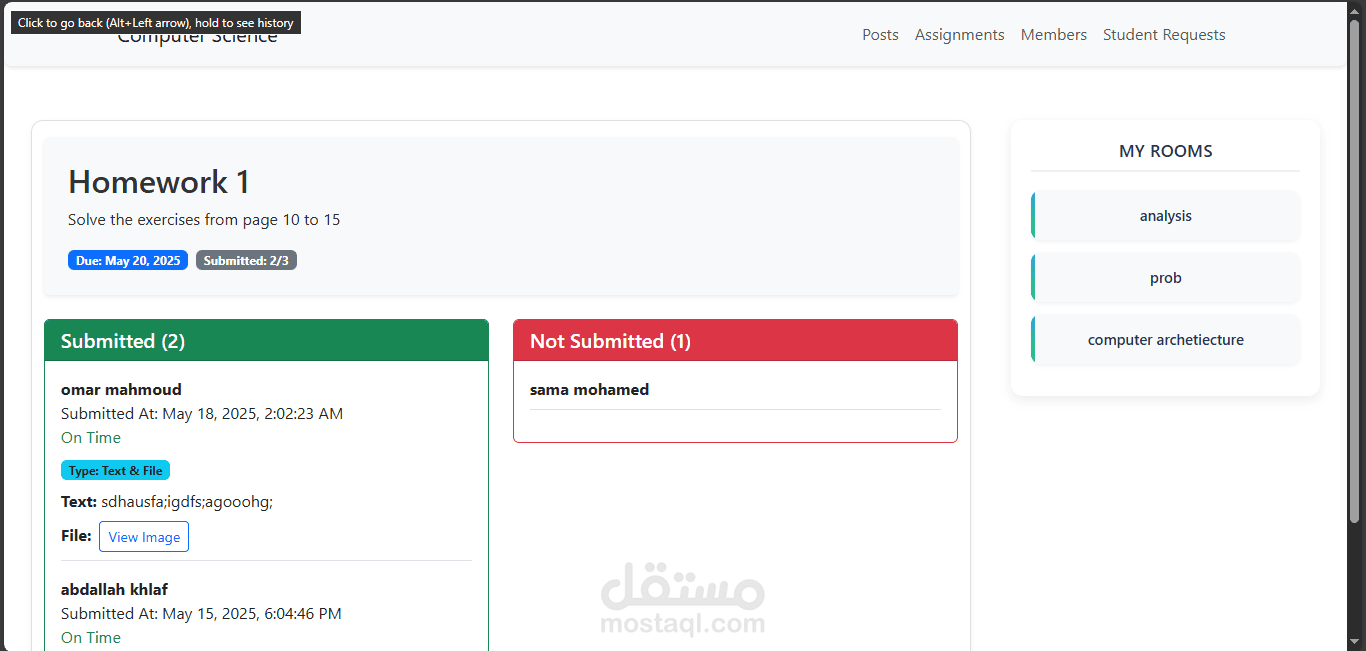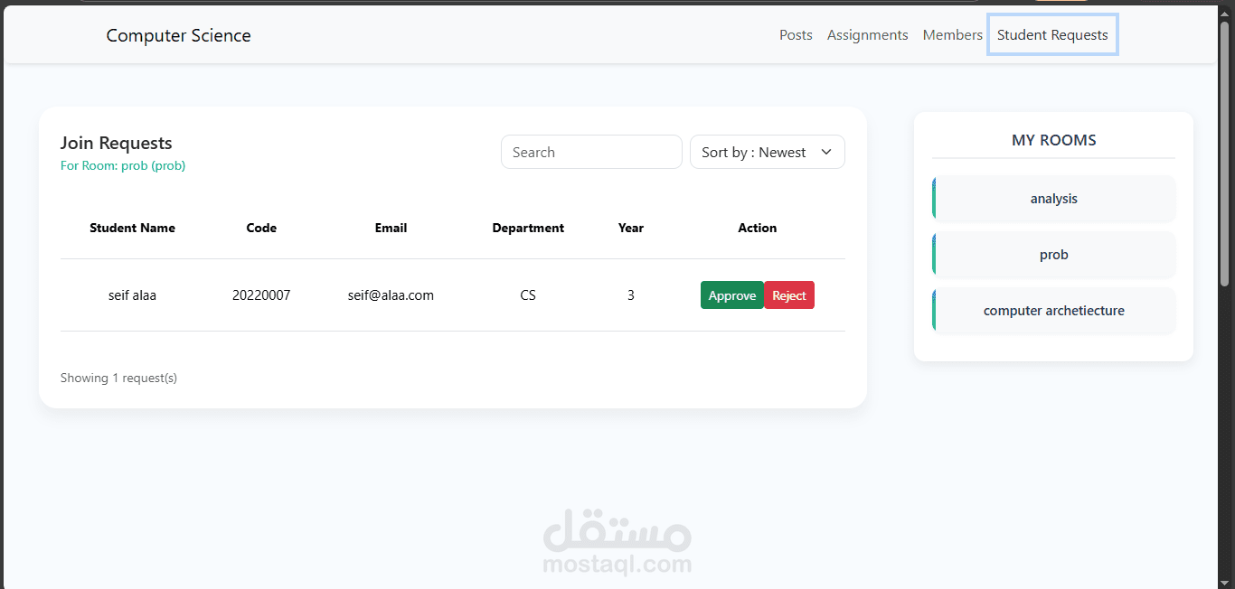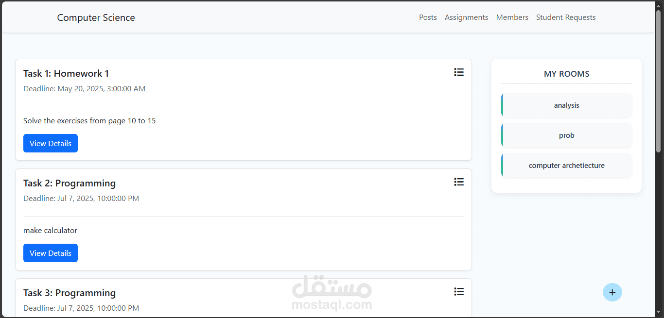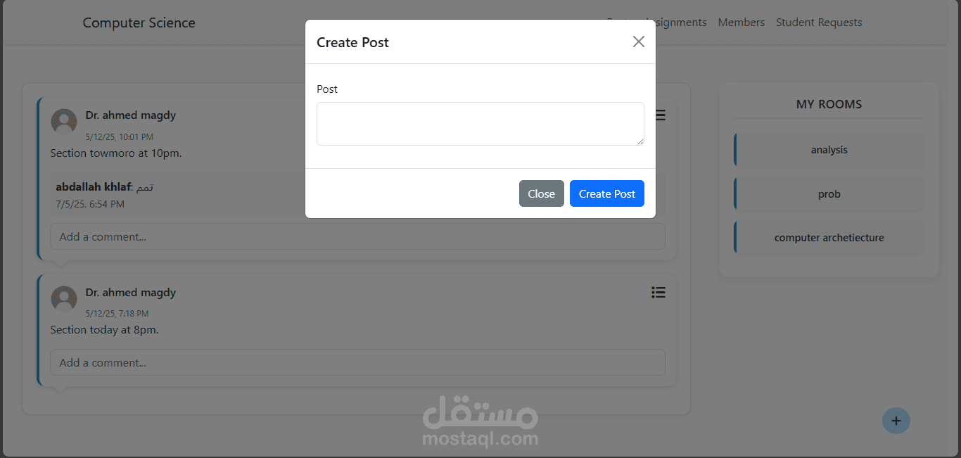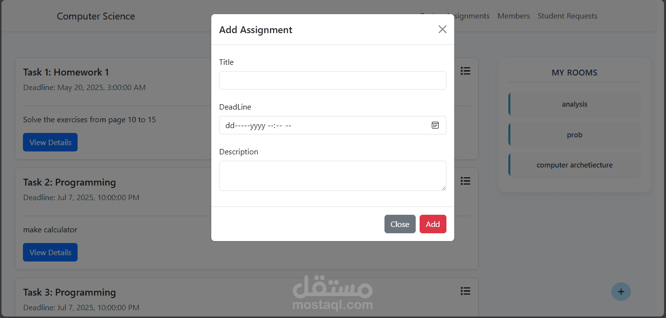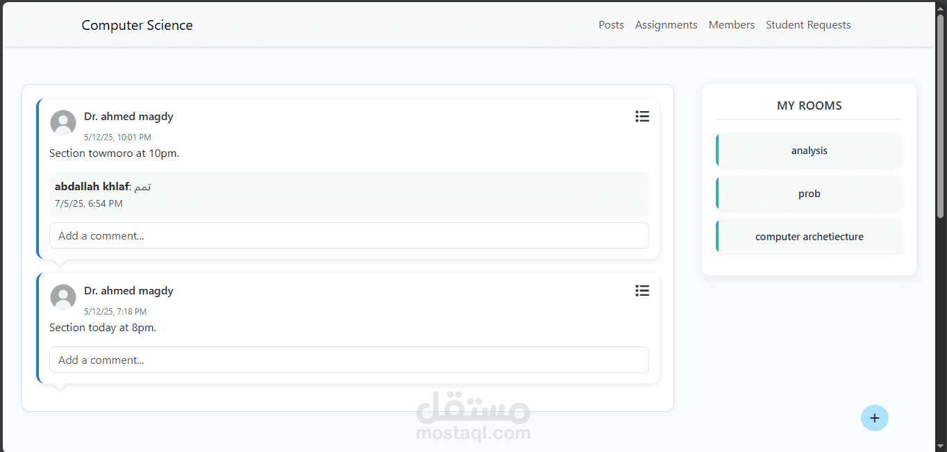 مشروع Academic Management System هو نظام تعليمي إلكتروني مخصّص للكليات، تم تطويره ليقدم تجربة مشابهة لمنصة Google Classroom مع تخصيصها بالكامل للبيئة الأكاديمية الجامعية. يتيح النظام إدارة الفصول الدراسية، نشر المواد التعليمية، إنشاء الواجبات، متابعة تسليم الطلاب، وتنظيم عملية التواصل بين الطلاب والأساتذة. كما يوفّر لوحة تحكم متكاملة لإدارة المستخدمين والفصول والإشراف على سير العملية التعليمية داخل الكلية بشكل منظم وسهل.