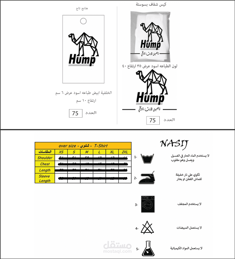 The tech pack was prepared in Arabic, as the collection was manufactured in Egyptian factories "NASIJ"
