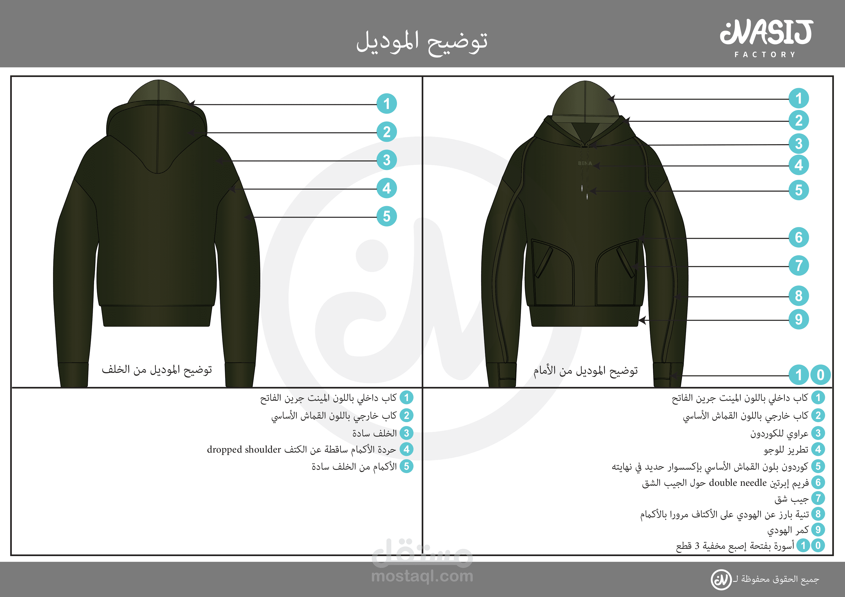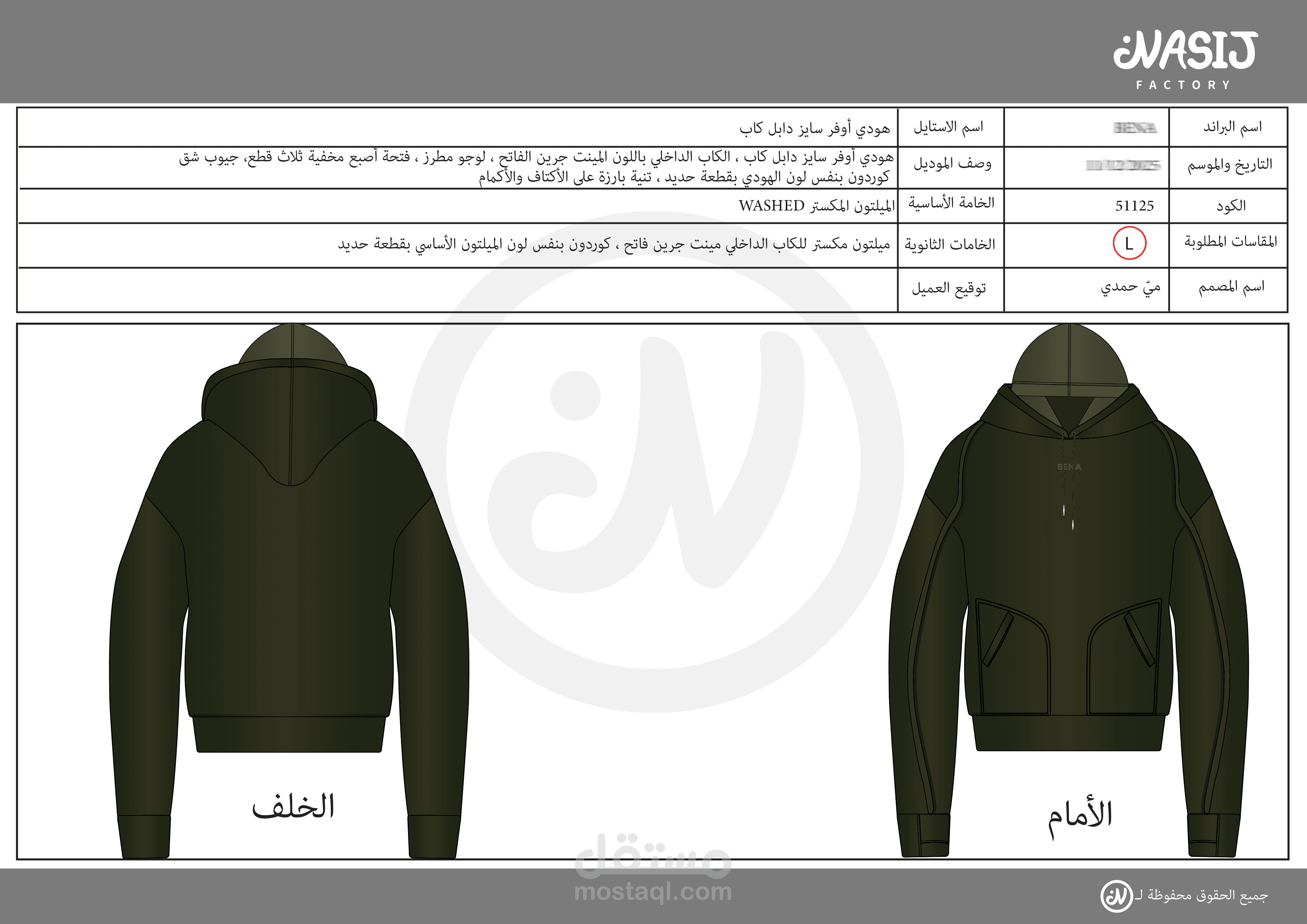 This Tech Pack was prepared in Arabic to meet the needs of local Saudi factories and clients, as the project was specifically developed for a brand in Saudi Arabia.