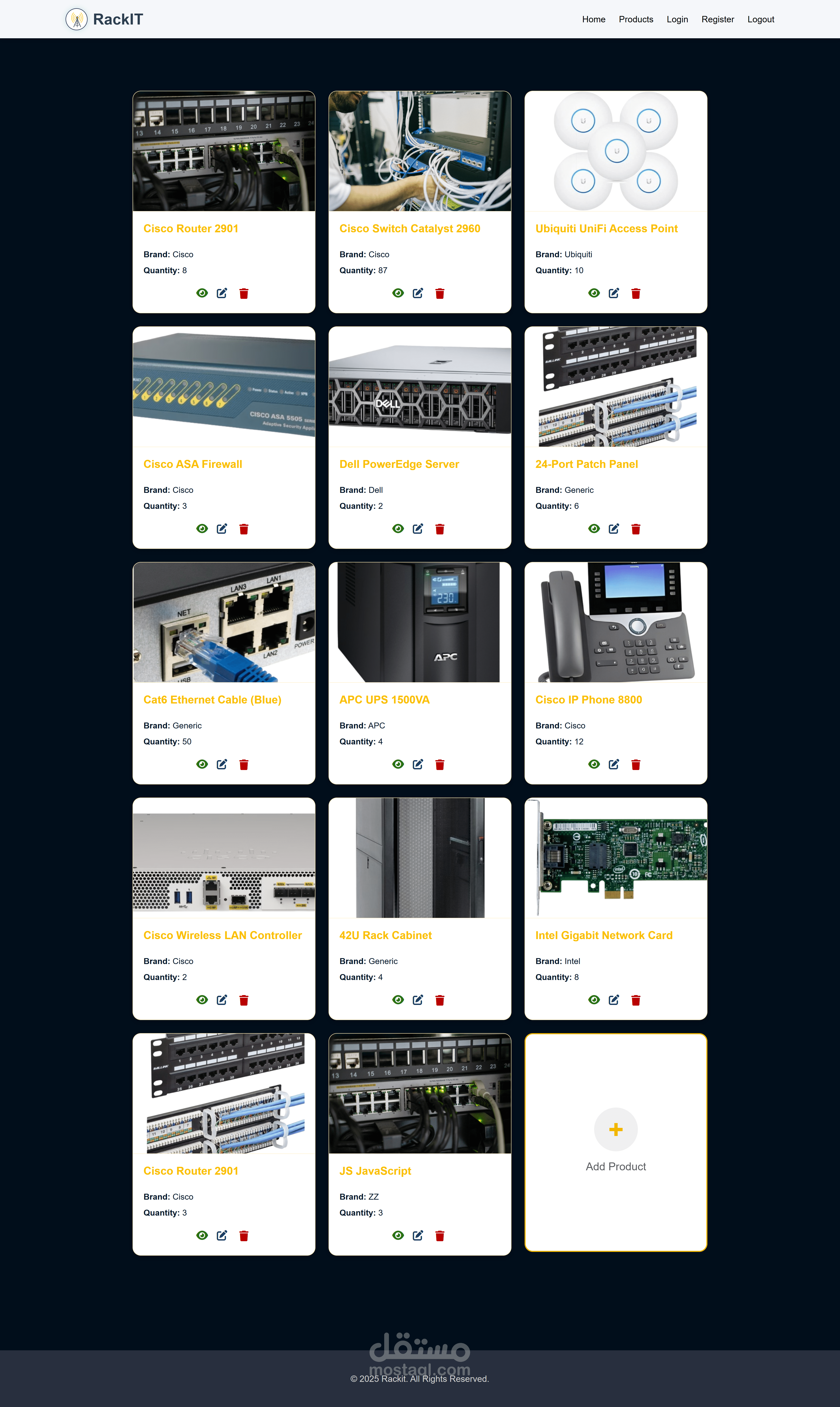 Rack It هو مشروع ويب بسيط لإدارة عناصر أو منتجات داخل نظام تخزين (Rack System)، تم تطويره باستخدام تقنيات الويب الأساسية PHP – HTML – CSS – JavaScript مع واجهات سهلة الاستخدام.