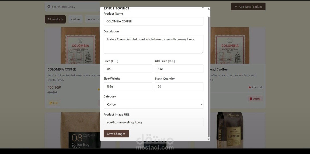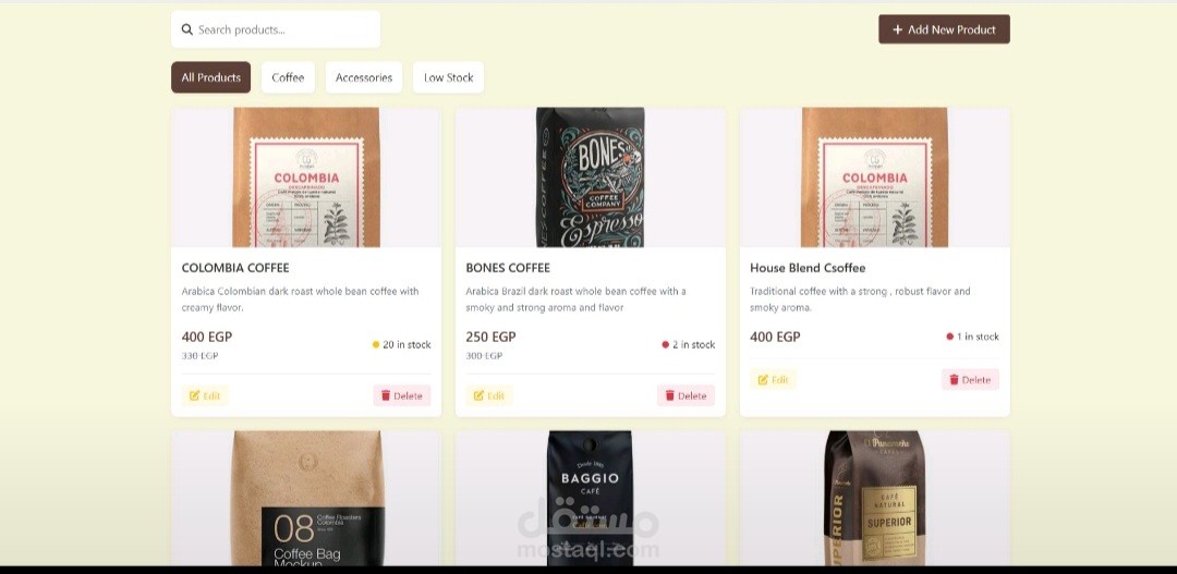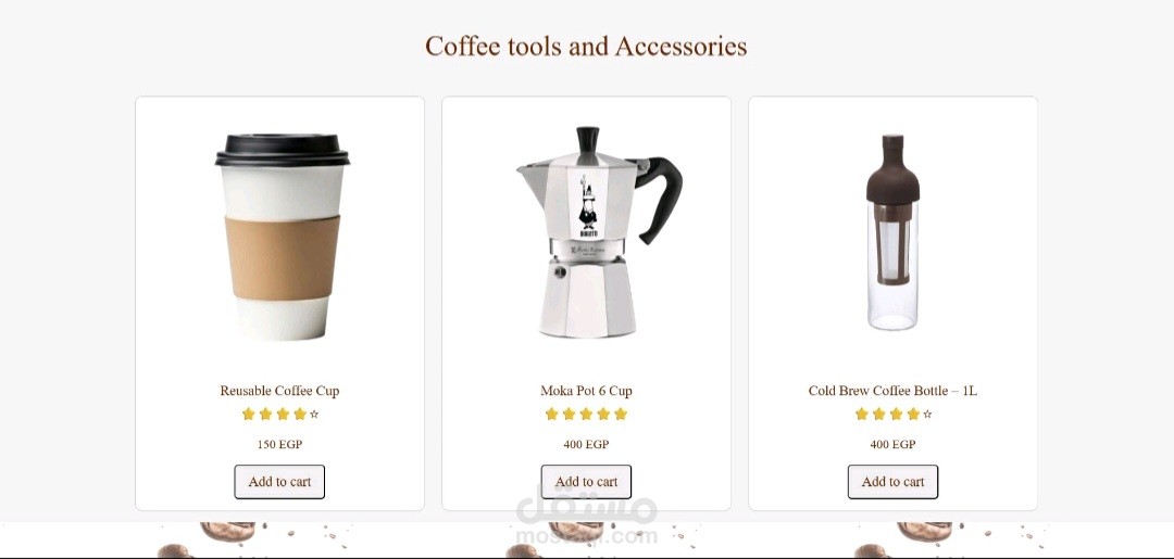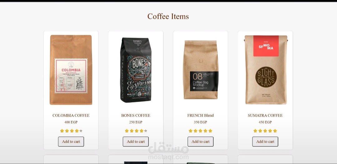 عرض المنتجات باستخدام بطاقات (Cards) ونوافذ منبثقة (Modals) لعرض التفاصيل.