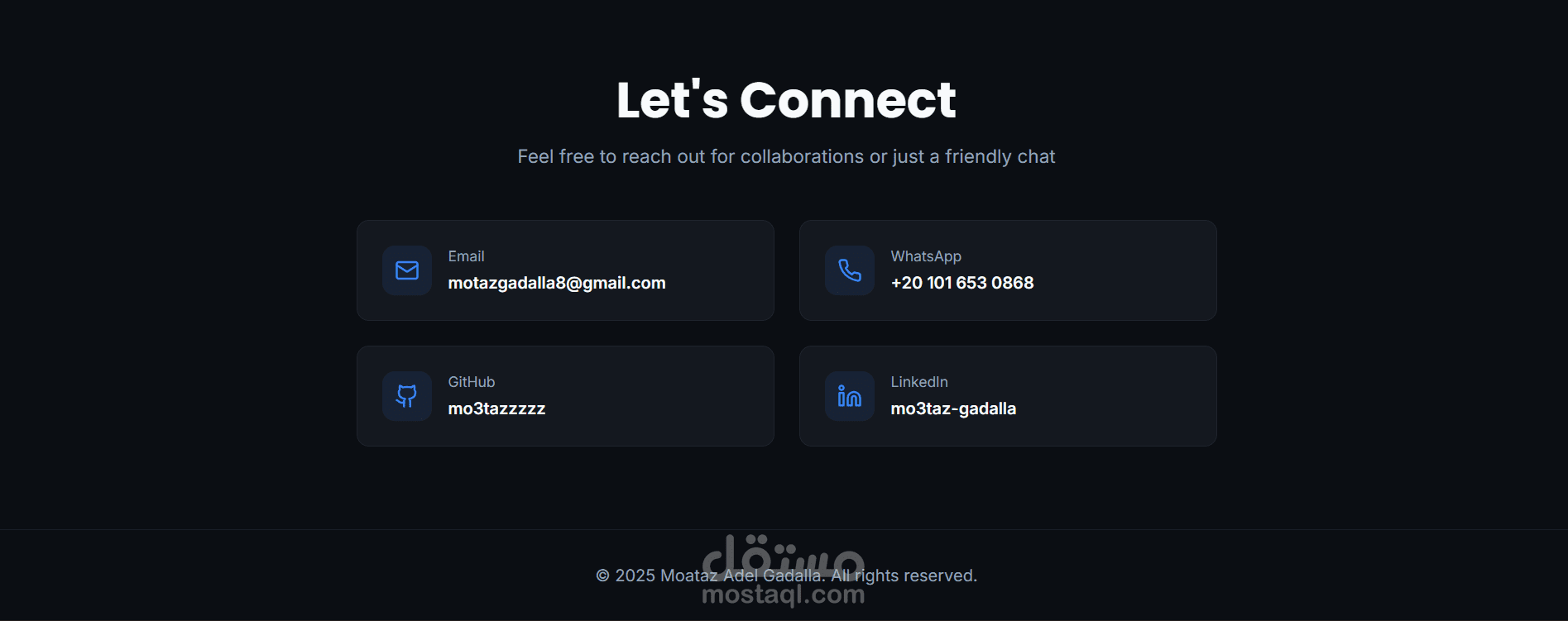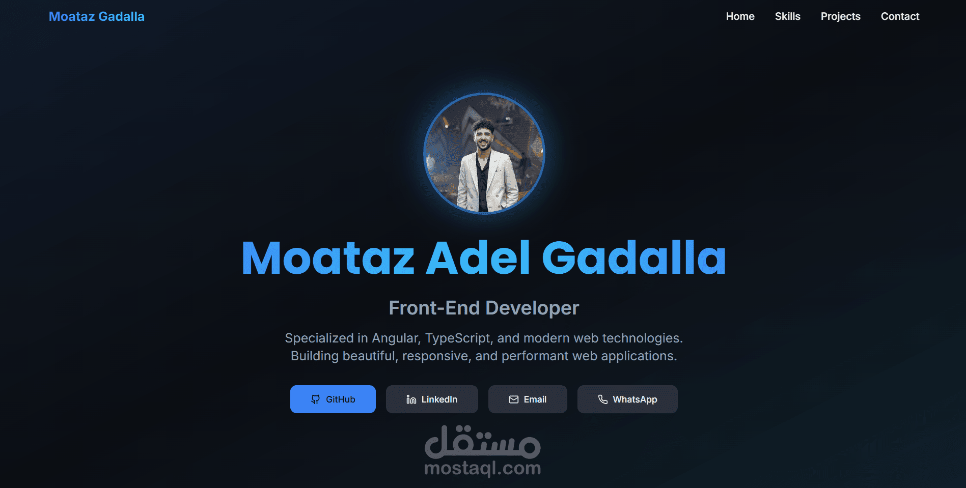 موقع بورتفوليو شخصي تم تطويره باستخدام Reactبهدف عرض مهاراتي، وأعمالي، وخبراتي في تطوير واجهات المستخدم بشكل احترافي.