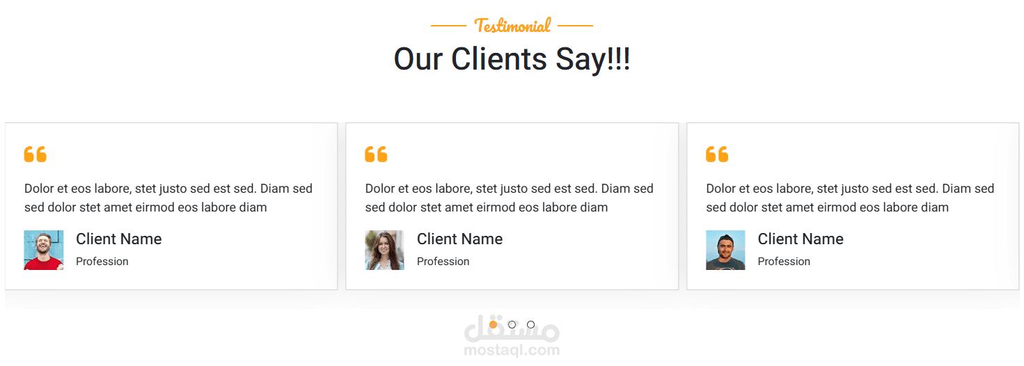 قسم آراء العملاء (Testimonials) قابل للإضافة حسب حاجة المشروع.