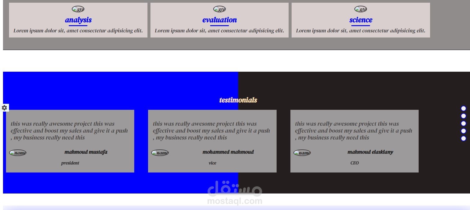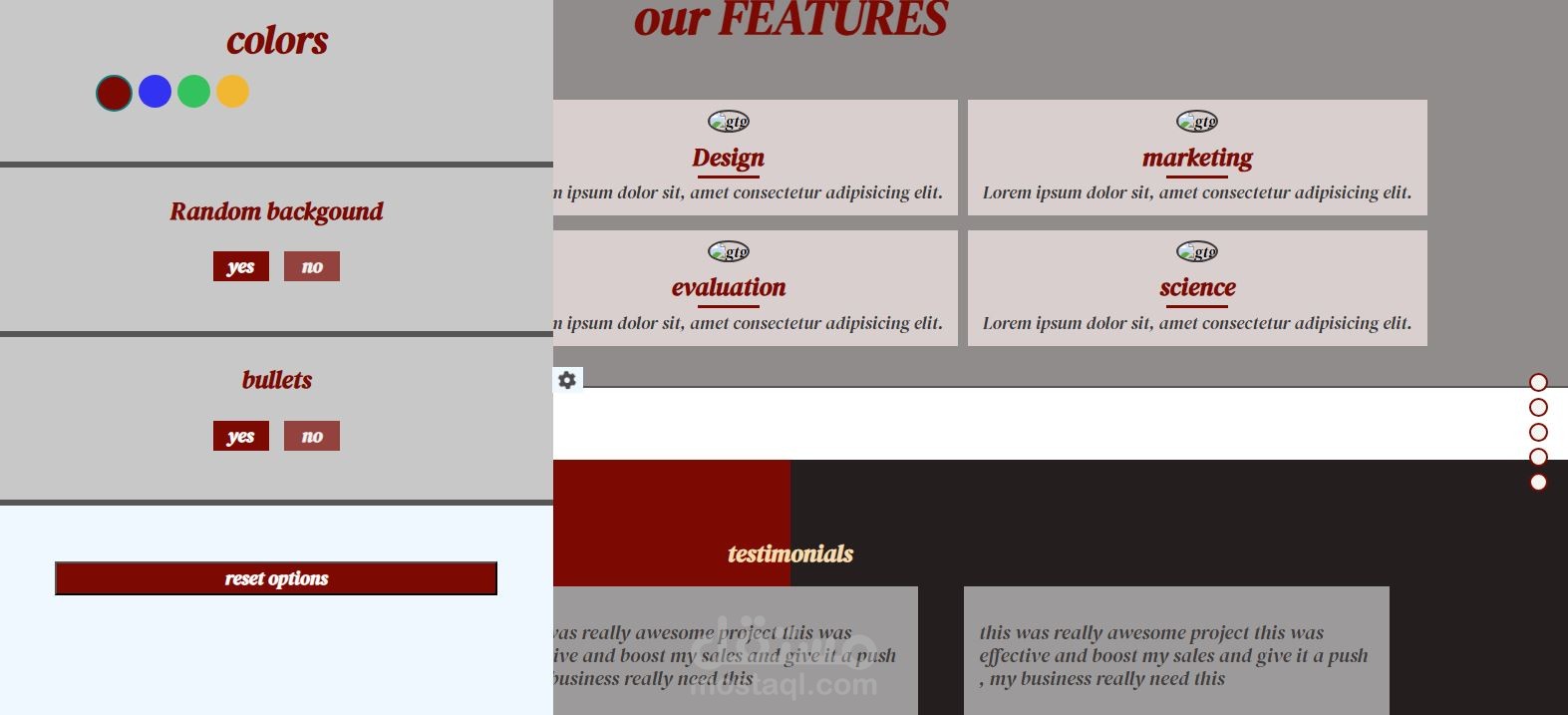 هذاالعمل استخدمت فيه كل مهاراتي في بداية تعلمي الfront end و كان الهدف منه هو التعلم و استخدمت فيه html , cssبالاضافةالى javascript