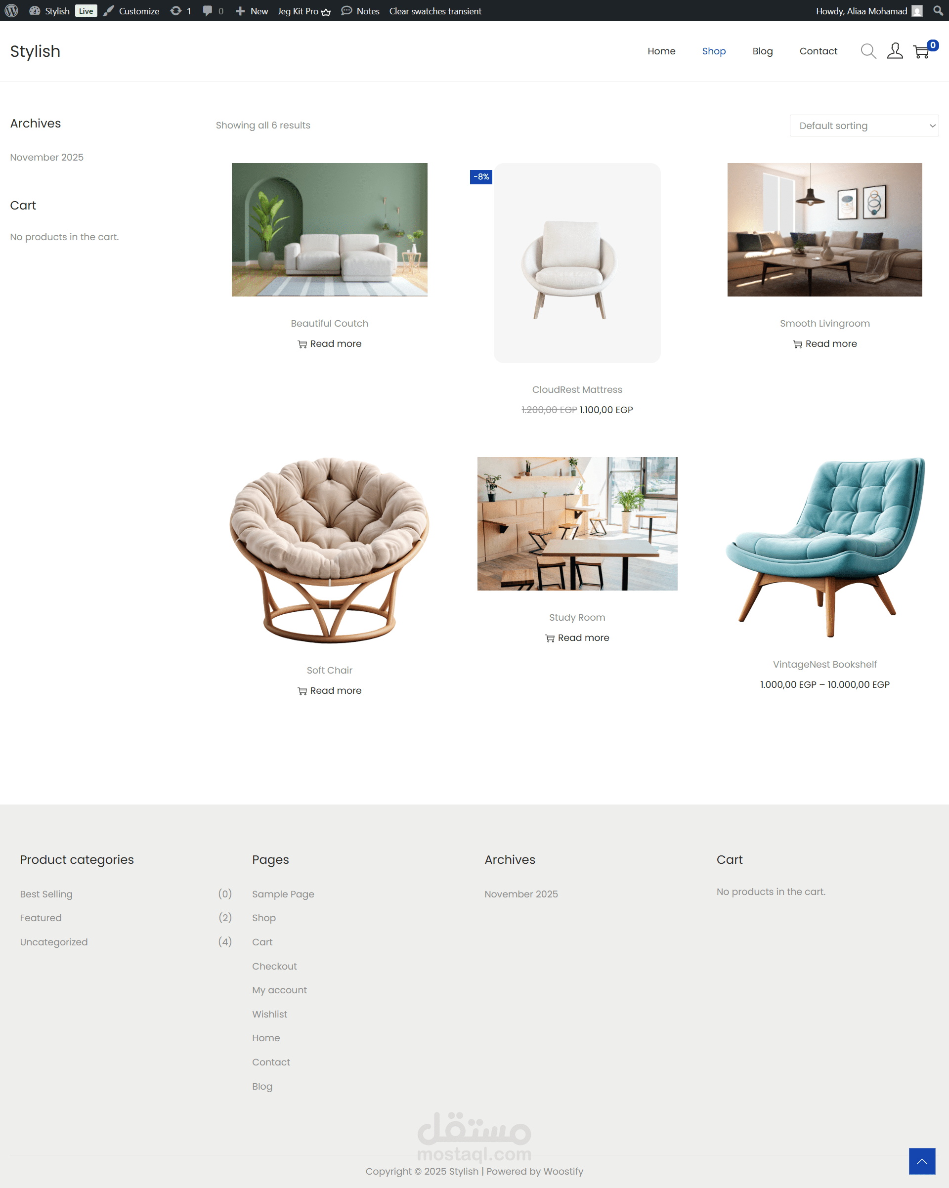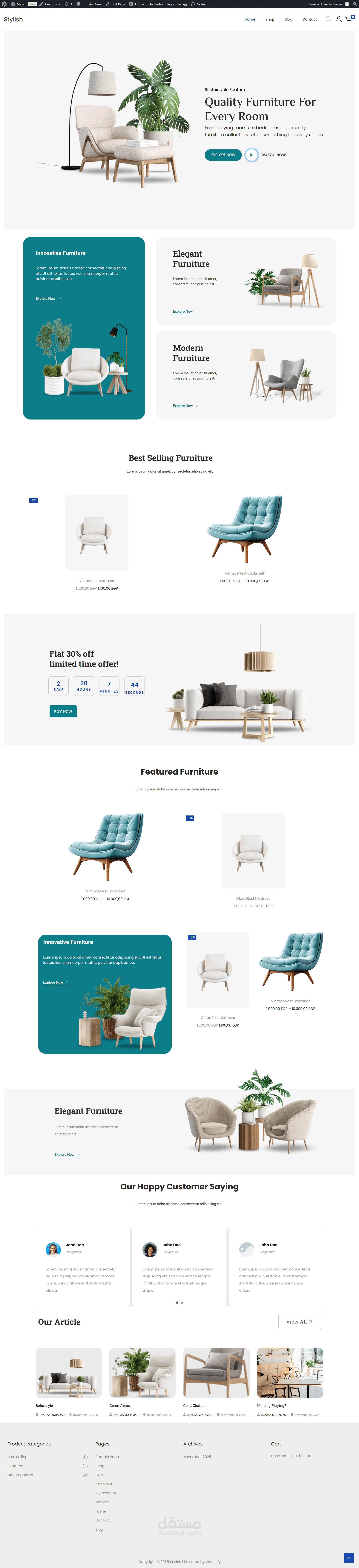 موقع إلكتروني لبيع الأثاث يدعى Stylish مصمم باستخدام Wordpress + Woocommerce