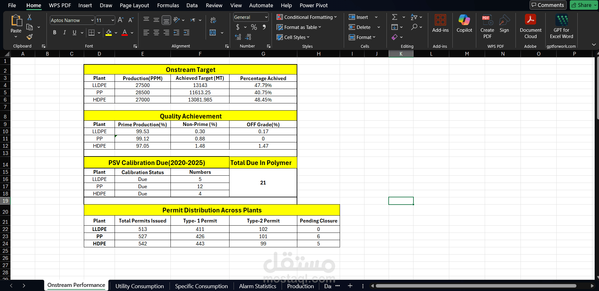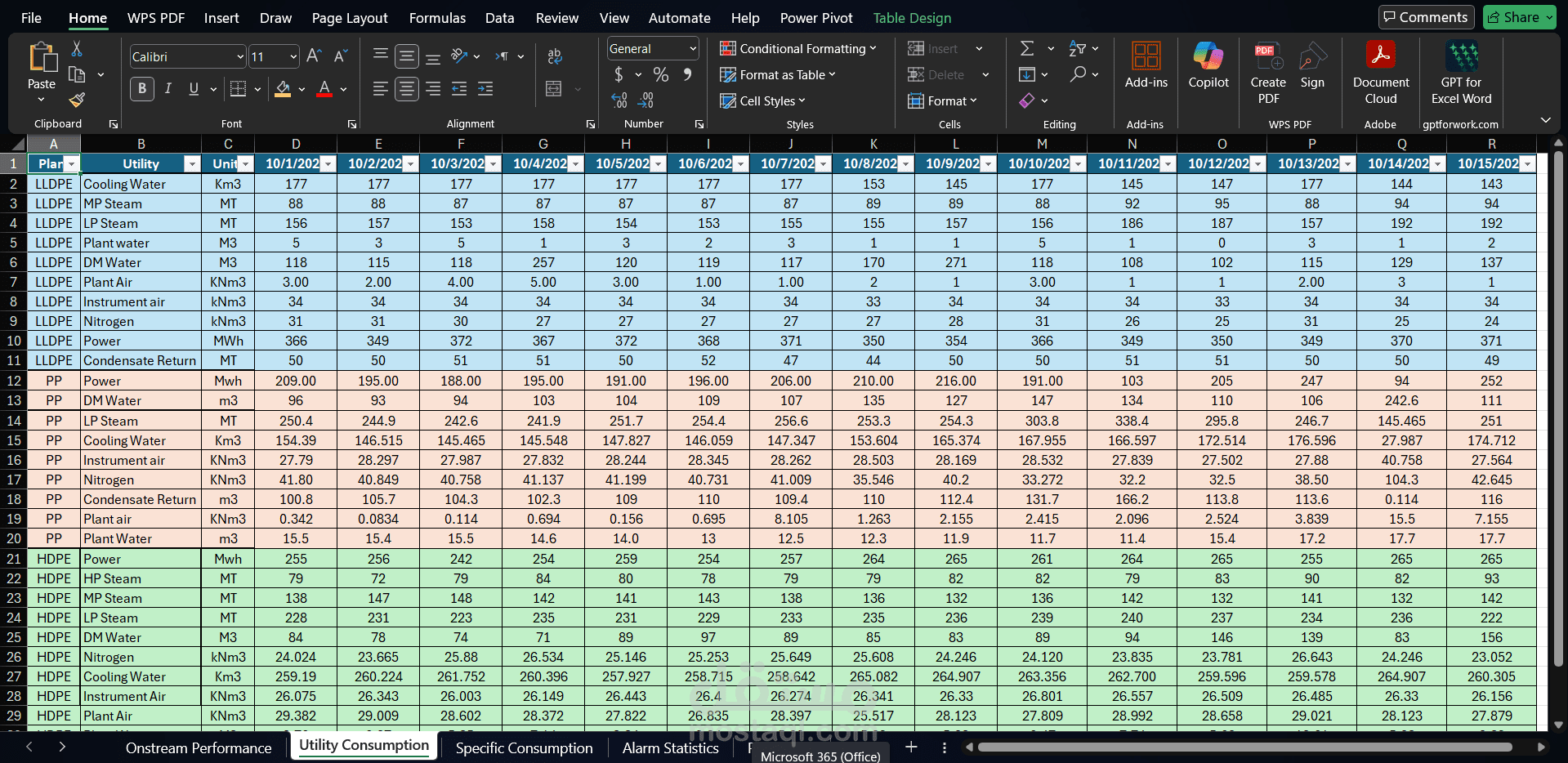 مراقبة استهلاك المرافق الأساسية للعمليات (مثل Cooling Water, Plant Air, HP Steam, Nitrogen).