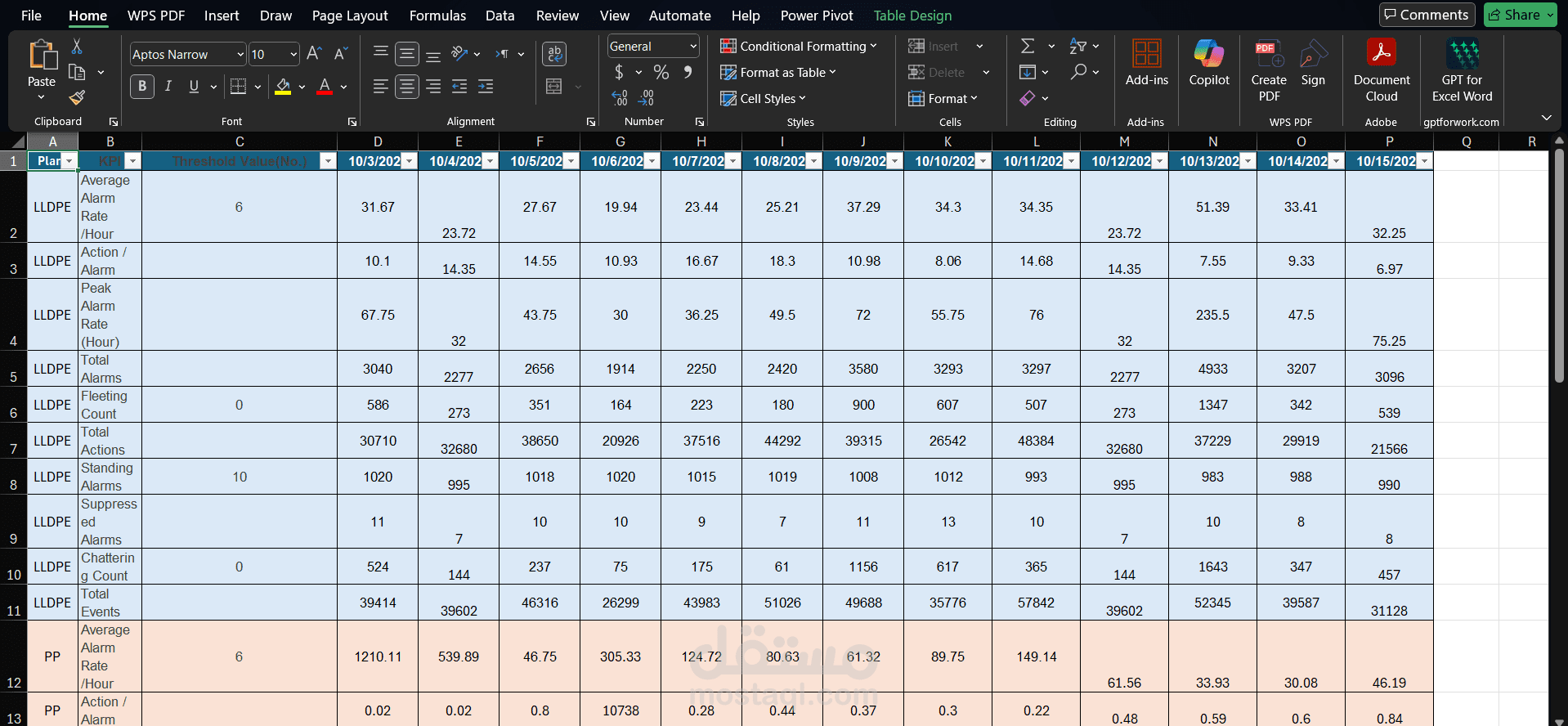 حساب مؤشرات حيوية مثل معدل ذروة الإنذارات في الساعة (Peak Alarm Rate / Hour) ومتوسط معدل الإنذارات في الساعة (Average Alarm Rate / Hour).