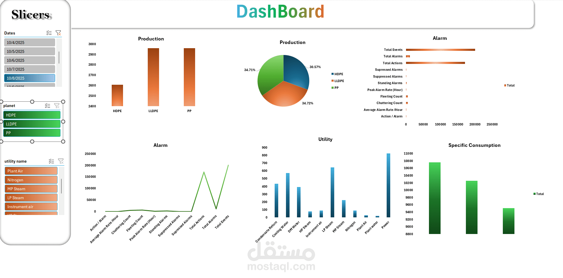 قمت بتصميم وتطوير لوحة تحكم متكاملة وتفاعلية باستخدام Excel لتمكين العميل من اتخاذ قرارات دقيقة وسريعة. تم بناء هذا المشروع على بيانات حقيقية (Real-World Data) مأخوذة من عمليات المصنع لضمان أن تكون التحليلات والنتائج قابلة للتطبيق مباشرة على أرض الواقع، مما يحقق قيمة مضافة فورية للعمليات.