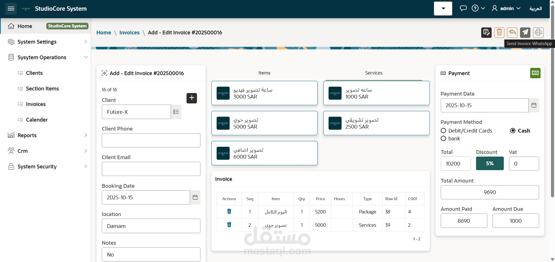 نظام Photographer Management System لإدارة استوديوهات التصوير بشكل احترافي، يشمل حجوزات العملاء، الجلسات، المدفوعات، الجدولة، وإدارة الفرق مع تقارير دقيقة لتسهيل متابعة الأداء وتحسين تجربة العملاء.