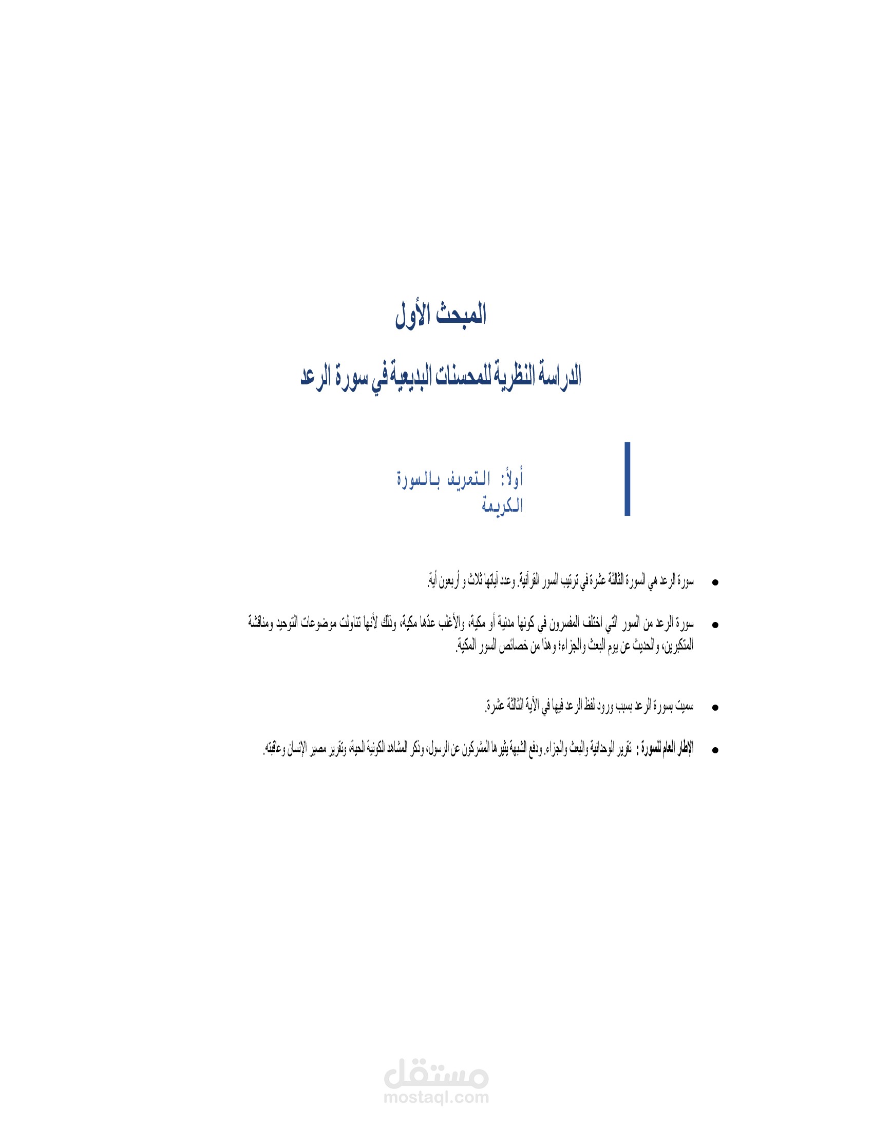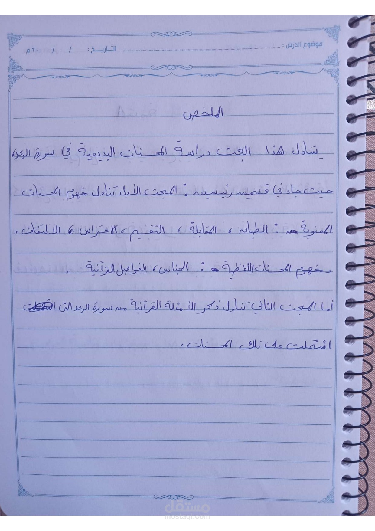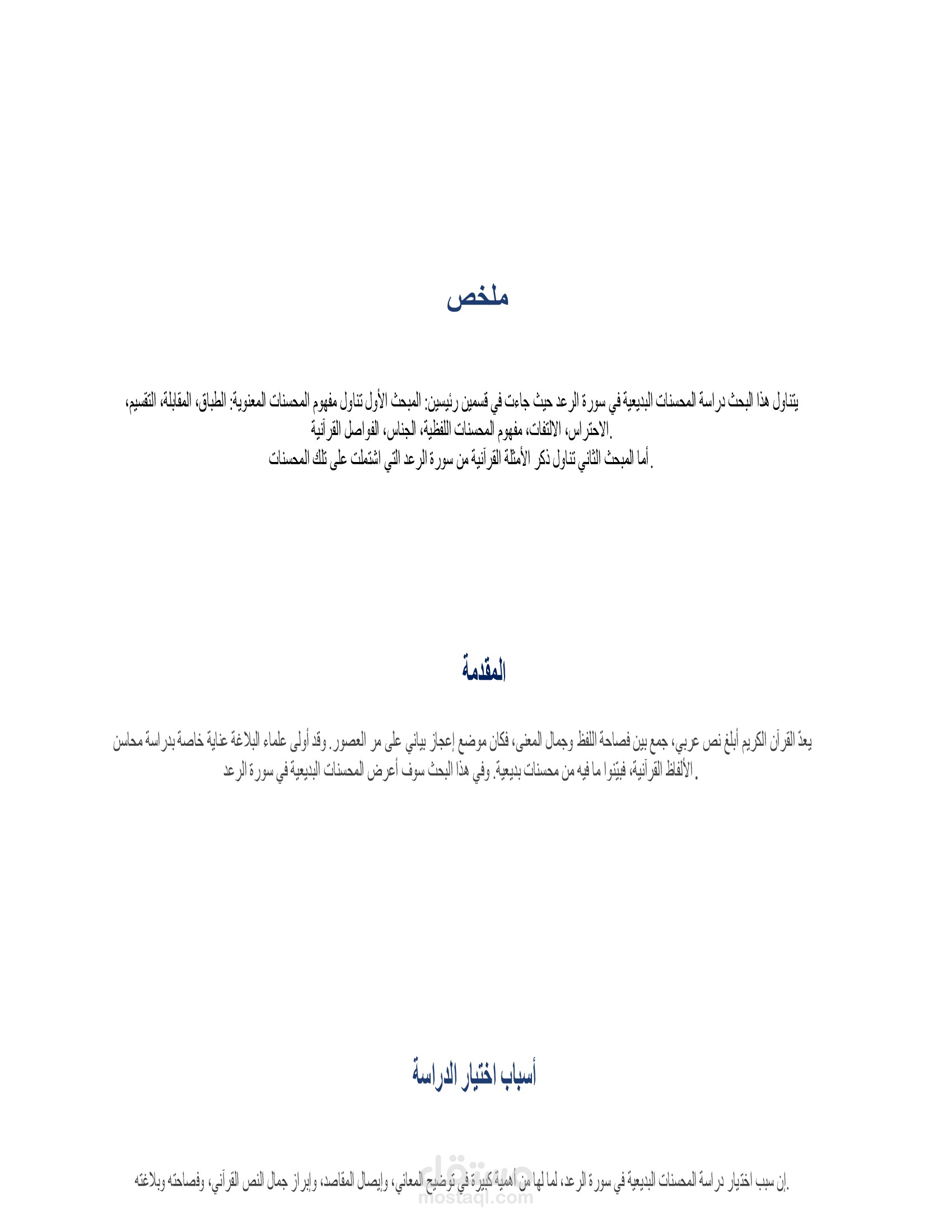 *الجهة المستفيدة: "طالبة جامعية (تخصص الدراسات الإسلامية) - بحث عن المحسنات البديعية في سورة الرعد "