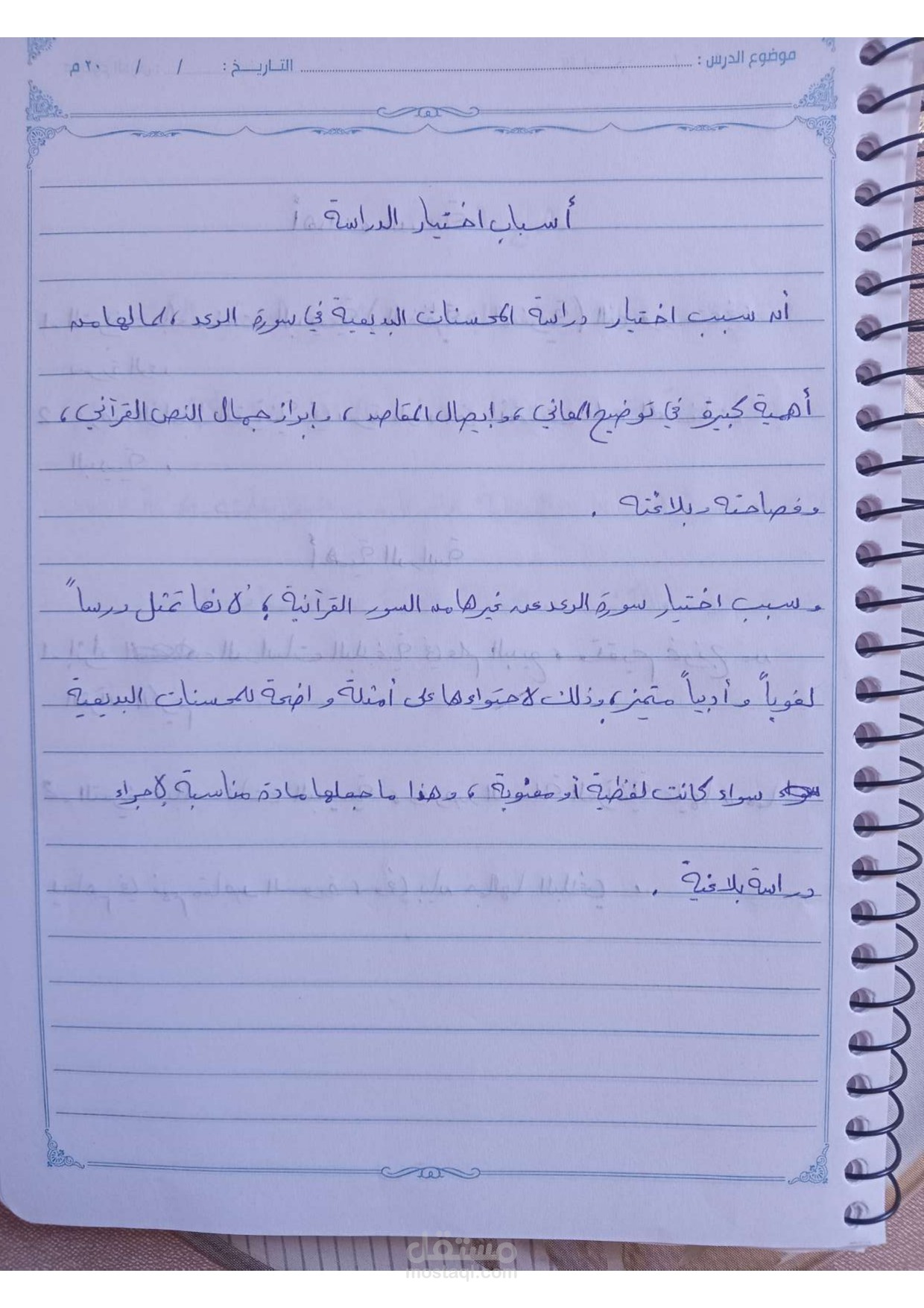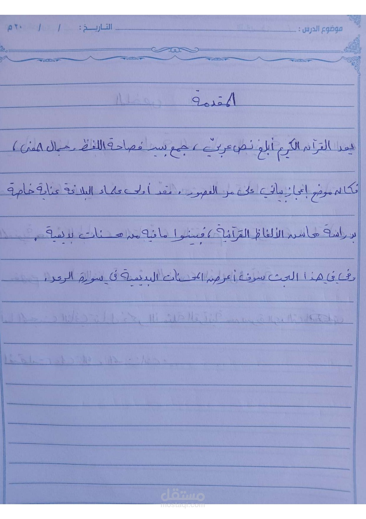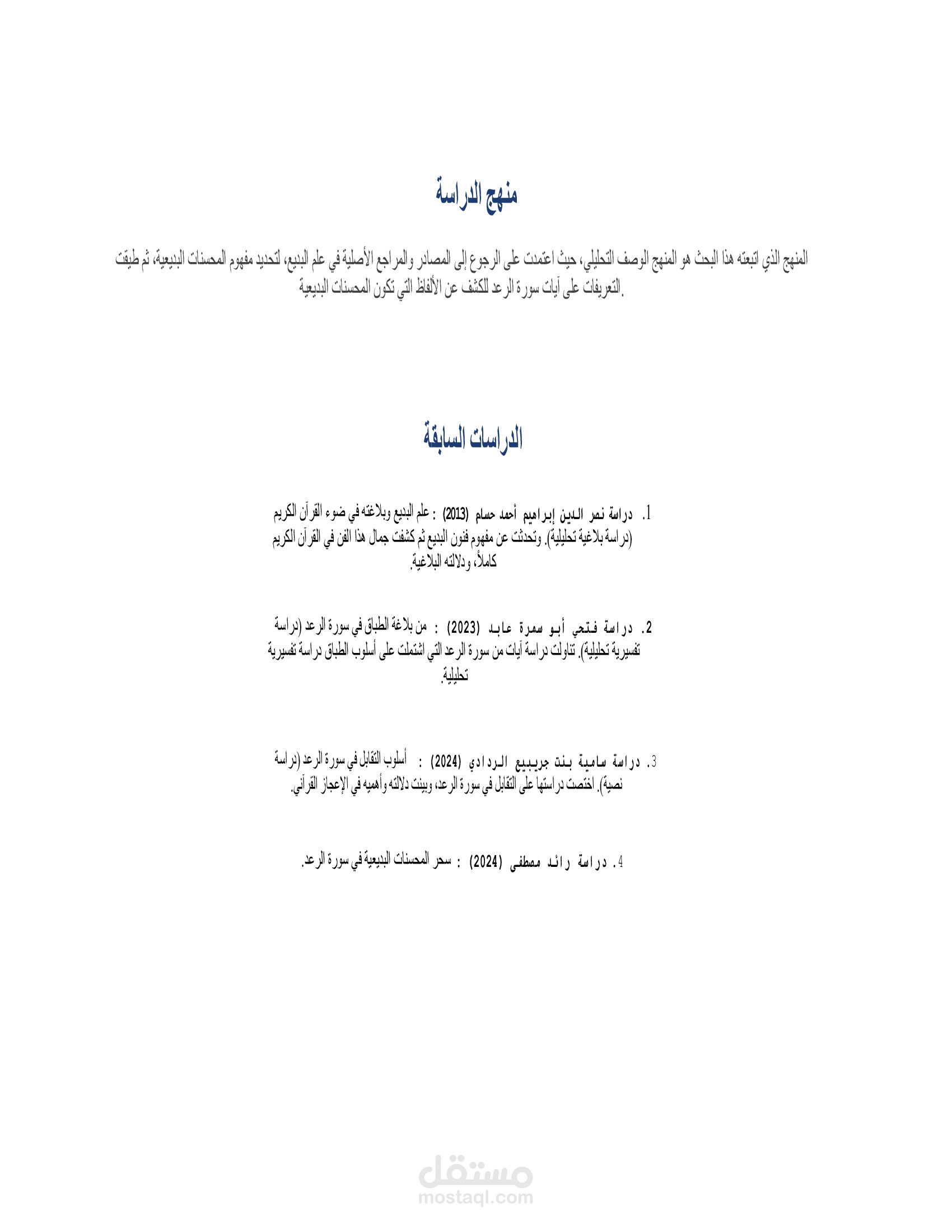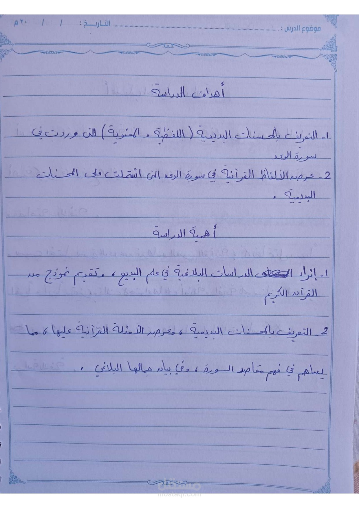 *الجهة المستفيدة: "طالبة جامعية (تخصص الدراسات الإسلامية) - بحث عن المحسنات البديعية في سورة الرعد "