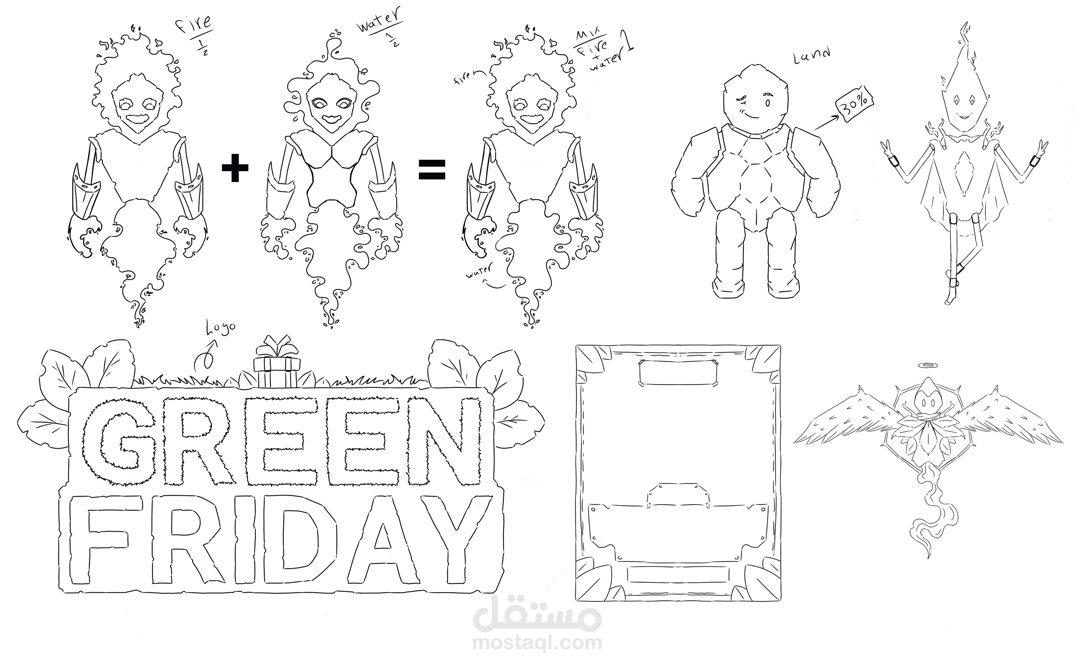 رسم يدوي لجميع الشخصيات والبطاقات والشعار باستخدام