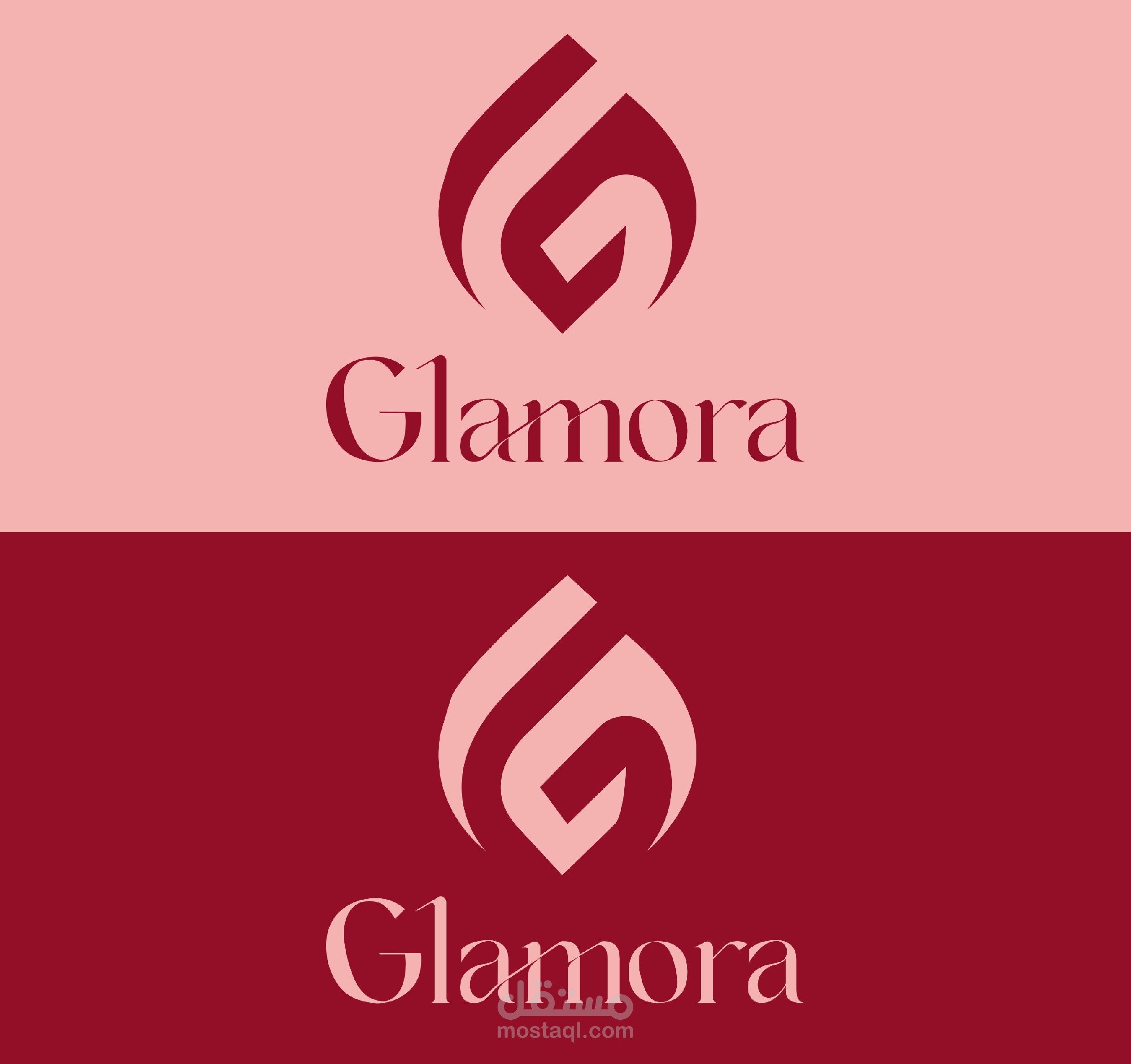 Wordmark: The name "Glamora" is rendered beneath the icon in a sophisticated, classic serif font.