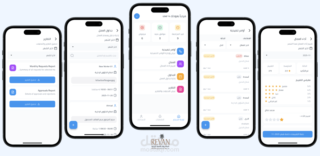 - إدارة شاملة للعمّال مع تقييم أداء دوري