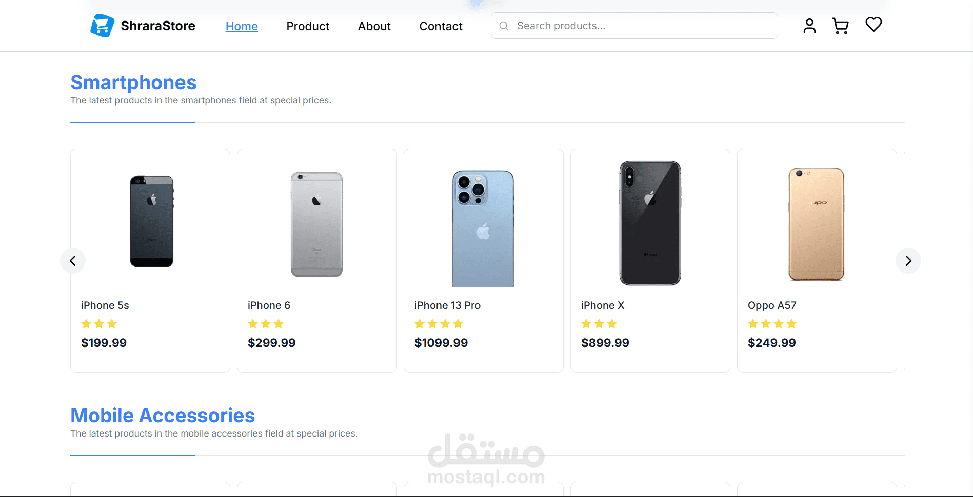 واجهة بسيطة للتجارة الإلكترونية، تتيح للمستخدمين تصفح المنتجات وإضافة سلع إلى سلة التسوق ومحاكاة تجربة التسوق. مثالية لاختبار تدفقات واجهة المستخدم وعرض وظائف المتجر الأساسية دون الحاجة إلى تكامل الواجهة الخلفية.