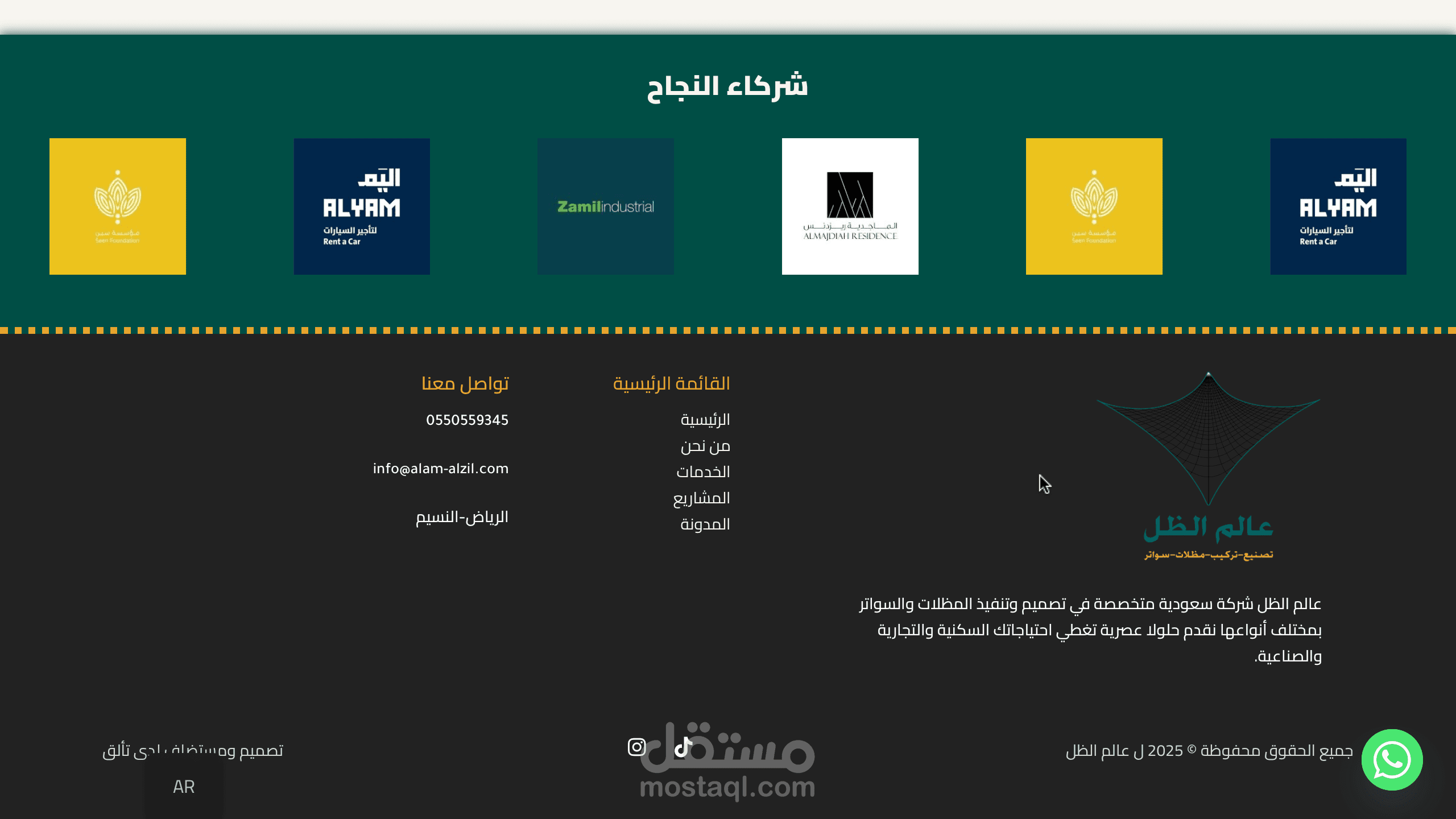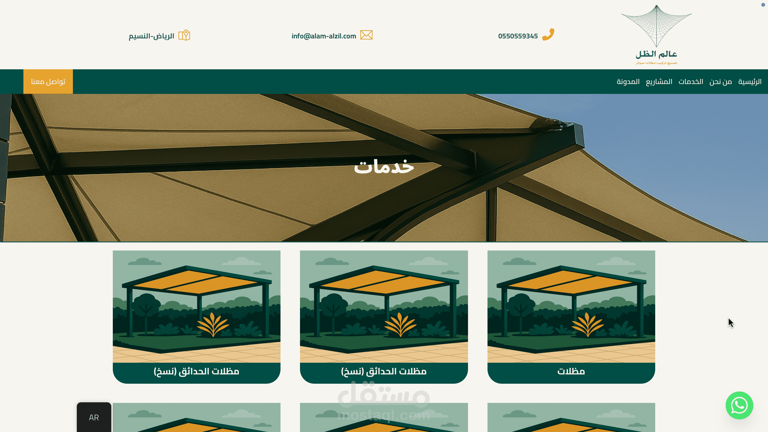 عالم الظل شركة سعودية متخصصة في تصميم وتنفيذ المظلات والسواتر بأعلى درجات الجودة، لتغطية احتياجات المشاريع السكنية والتجارية والصناعية داخل المملكة وخارجها. تم بناء الموقع بالكامل على ووردبريس باستخدام Bricks Builder، ليعبر عن هوية الشركة وينقل خدماتها وخبرتها إلى العملاء بشكل عصري وسهل التصفح.