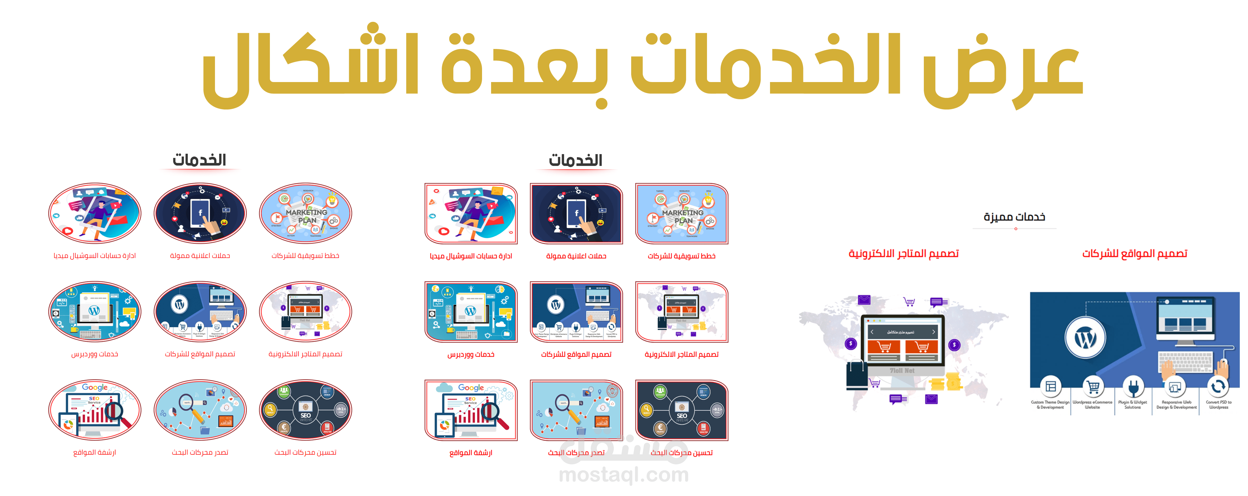 تم تصميم صفحة تسويق خدمات ومنتجات على الواتساب بالوان واشكال مختلفة تعمل على اللابتوب والجوال بشكل سريع .. عد الضغط على اي خدمة او منتج يتم التحويل مباشرة على الواتساب مع عنوان الرسالة نفس عنوان المنتج او الخدمة.