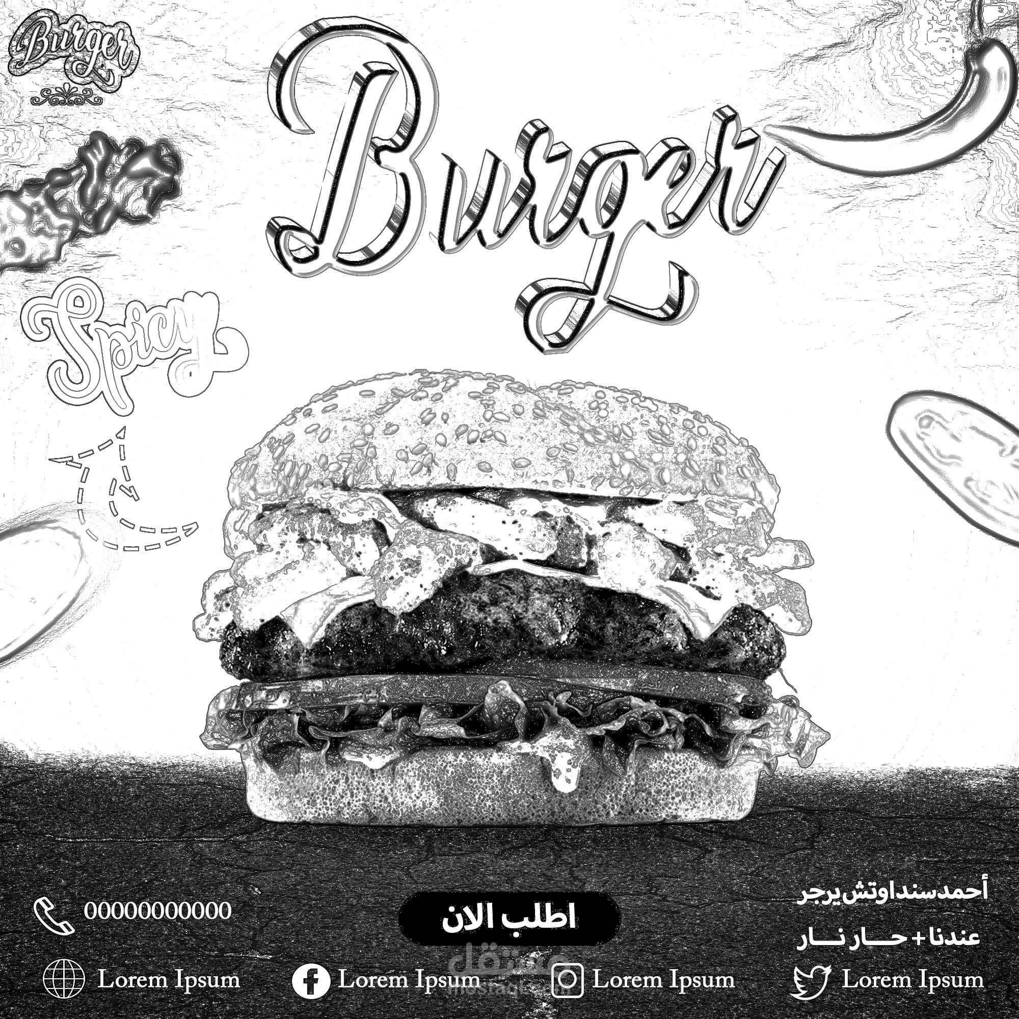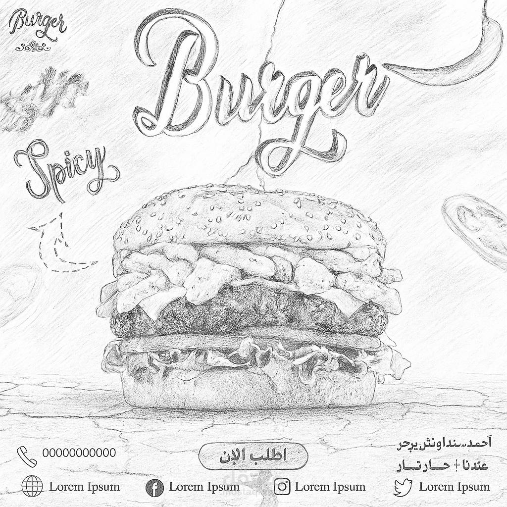 To create a striking advertisement that highlights the fiery taste of the burger while presenting it in a raw, artistic sketch style.