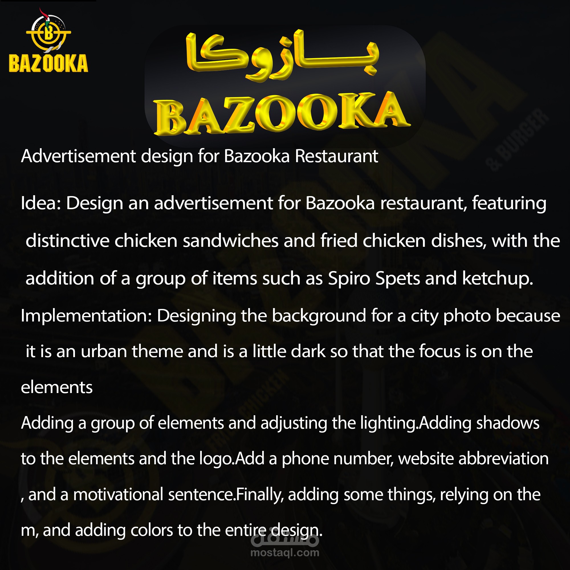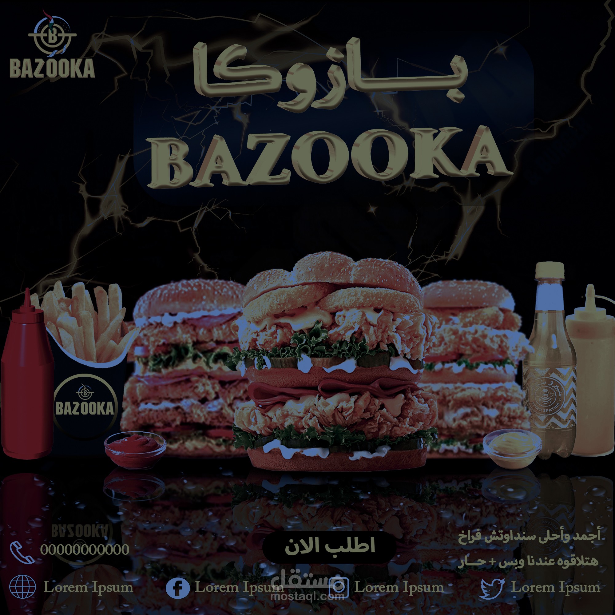 "Bazooka brings you the biggest and most delicious chicken and burger sandwiches with a unique experience."