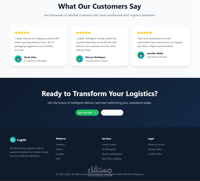 سواء كنت بحاجة لتوصيل الطعام، المستندات، أو أي منتجات أخرى، يوفّر الموقع نظام تتبع دقيق، خيارات دفع آمنة، وإشعارات فورية لضمان وصول الطلبات في الوقت المحدد وبأعلى مستوى من الأمان والجودة. المنصة مصممة لتسهيل العمليات لكل من العملاء وفرق التوصيل، مع التركيز على تقديم تجربة سلسة وموثوقة لجميع المستخدمين."