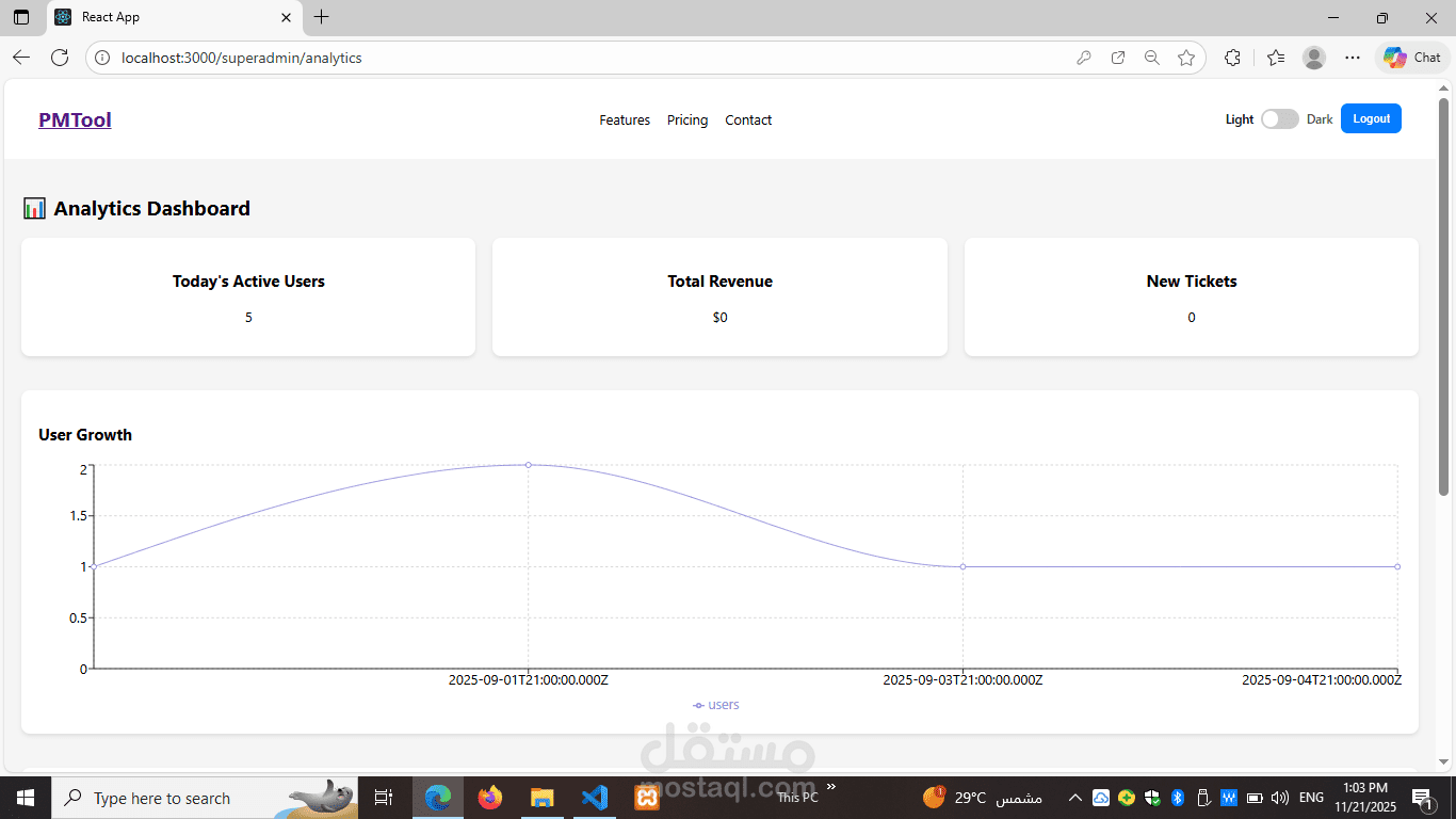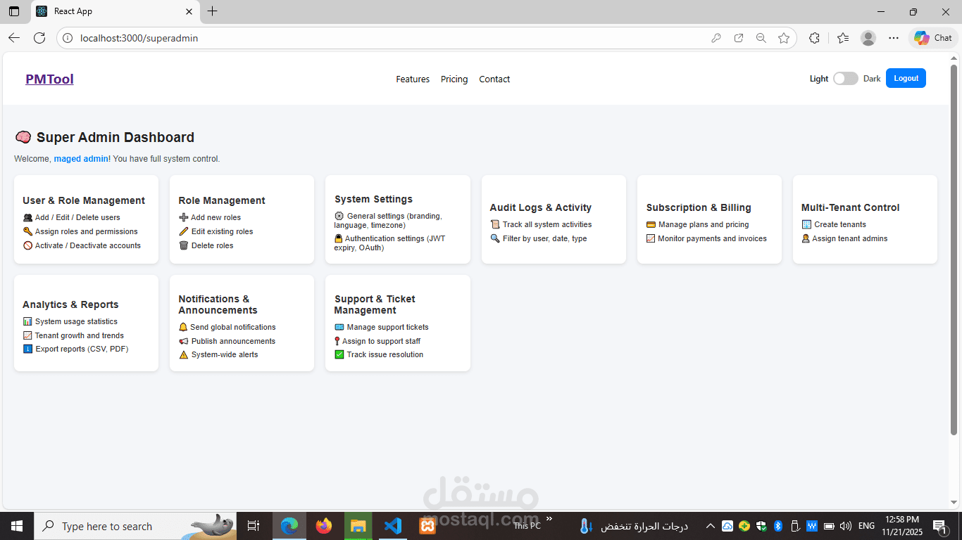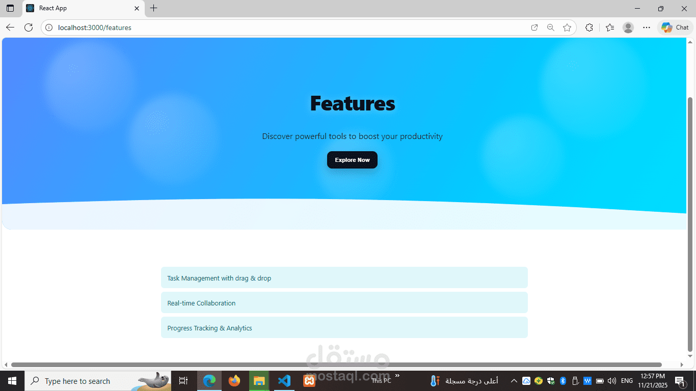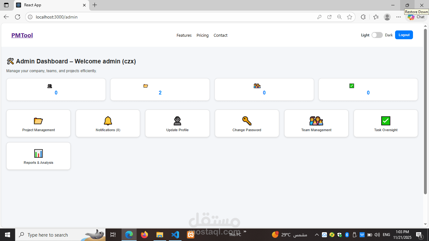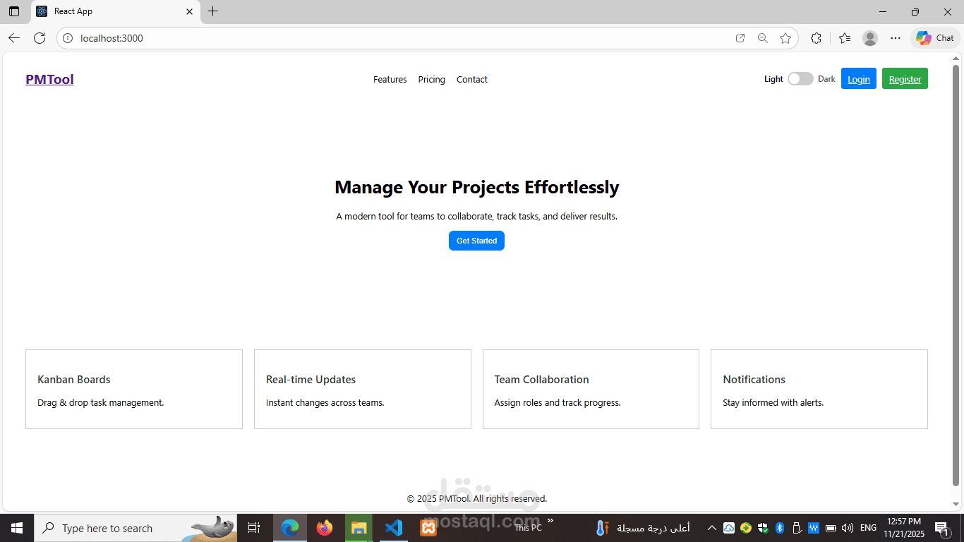 pm-landing هو صفحة هبوط (Landing Page) مصممة لتقديم خدمات مدير المشاريع (Project Manager) بطريقة جذابة وفعّالة. الصفحة تهدف إلى إبراز خبرات مدير المشاريع، مهاراته، وإنجازاته بشكل يسهّل على العملاء أو الشركات التعرف على القيمة التي يقدمها.