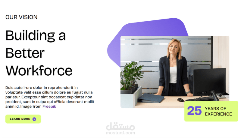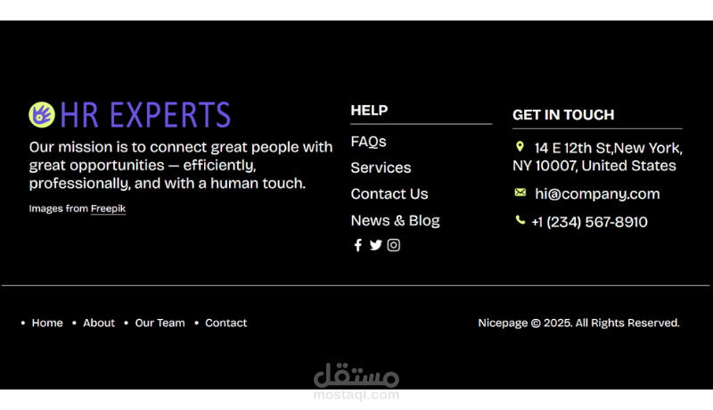 قمت بتصميم نموذج تدريبي لموقع شركة HR يحتوي على أقسام احترافية مثل: